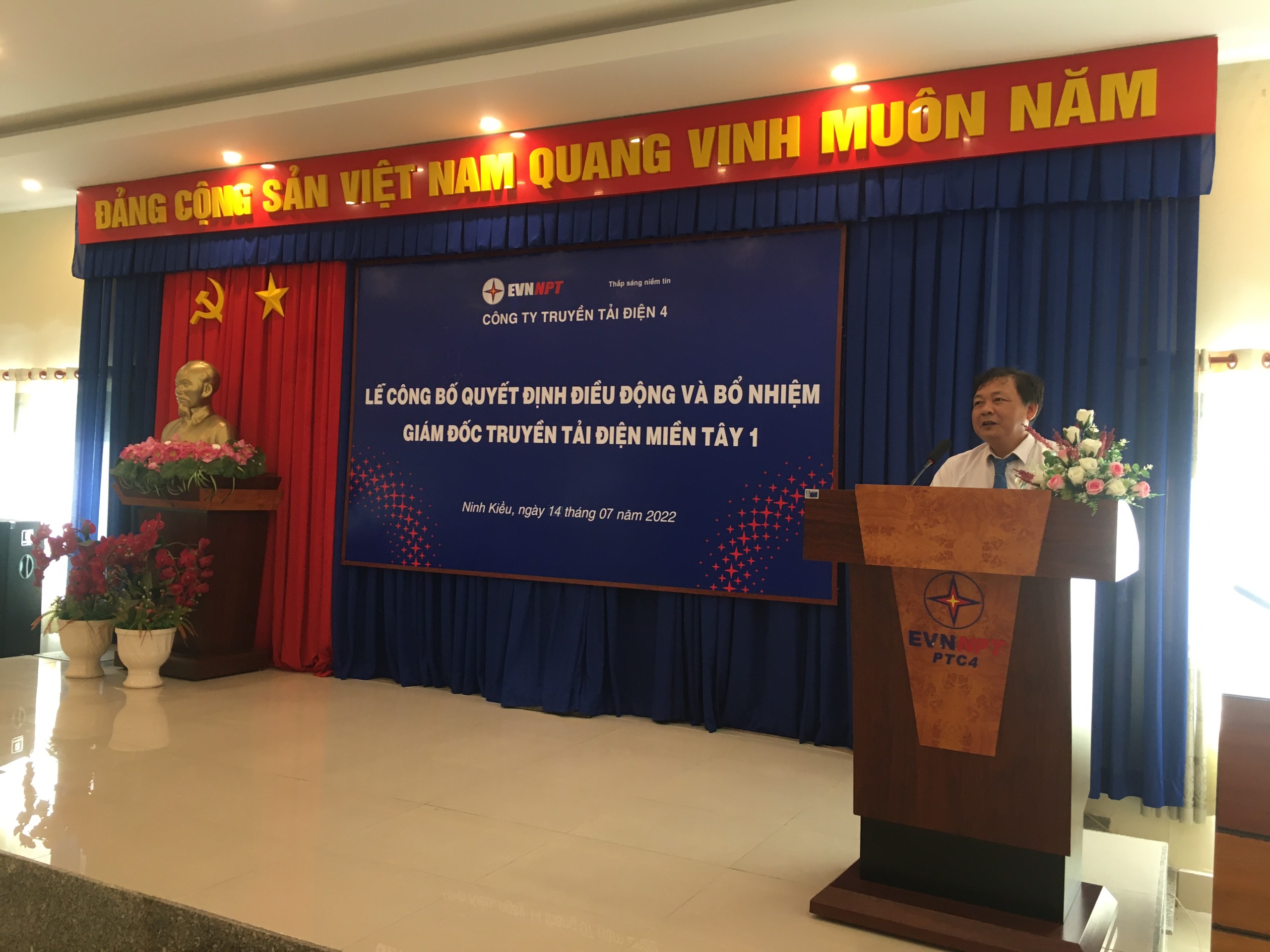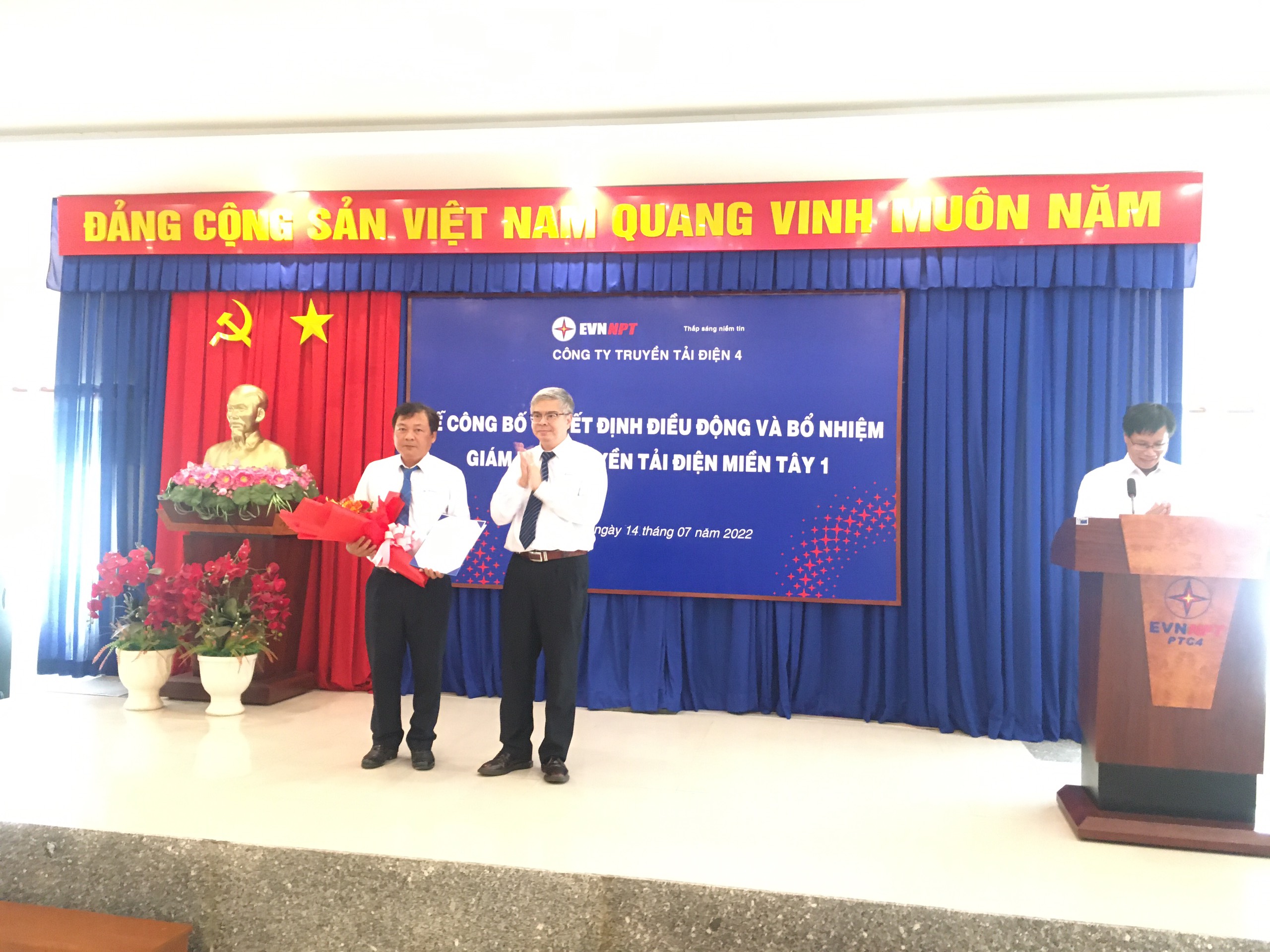 Tại buổi lễ, ông Đặng Nam Sơn - Phó phòng TCNS công bố Quyết định của Công ty công bố Quyết định số 4979/QĐ-PTC4 ngày 12/7/2022 của Công ty Truyền tải điện 4 về việc điều động và bổ nhiệm cán bộ. Ông Trần Quốc Hiệu được điều động và bổ nhiệm giữ chức vụ Giám đốc Truyền tải điện miền Tây 1, kể từ ngày 15/7/2022. Thời hạn giữ chức vụ là 5 năm.