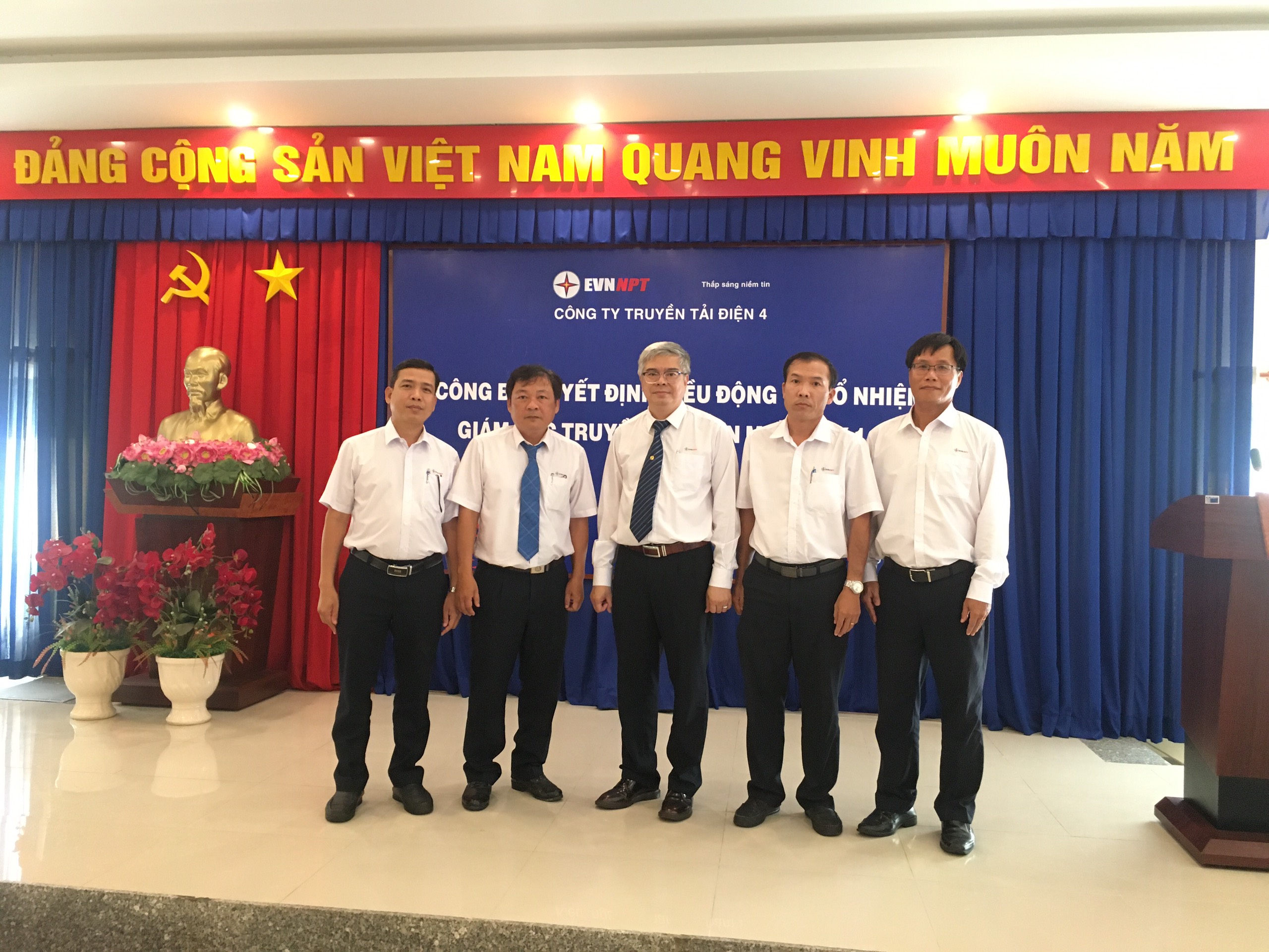 Ban Giám đốc TTĐMT1 chụp hình lưu niệm với Phó Giám đốc (đứng giữa) và Phó Phòng TCNS Công ty (Bìa phải)