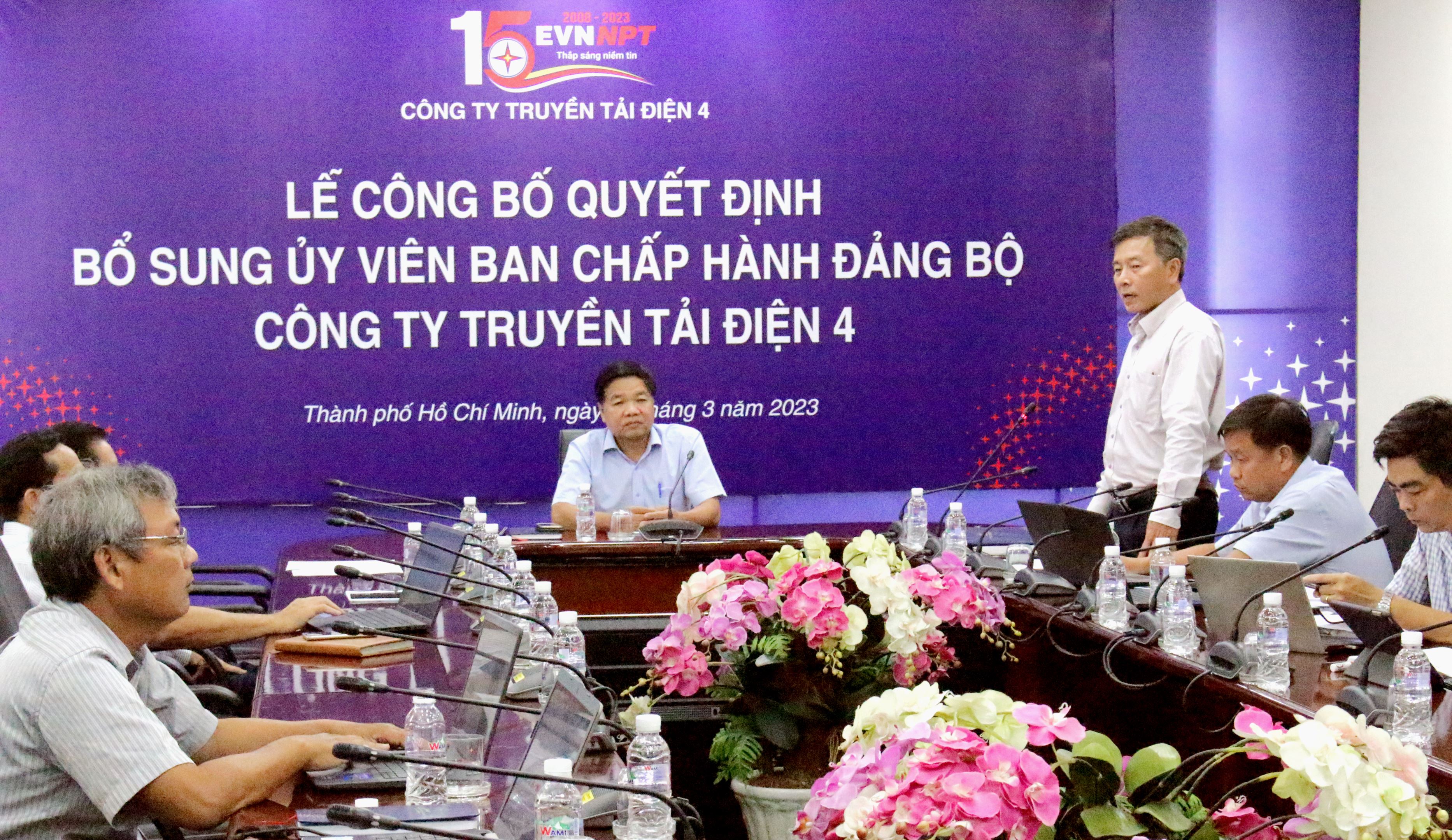 Tại buổi lễ, thay mặt Ban thường vụ Đảng ủy Công ty, đồng chí Ngô Trung Hiếu, Ủy viên Ban thường vụ Đảng ủy - Trưởng phòng Kế hoạch Công ty đã công bố Quyết định số 262-QĐ/ĐU ngày 20/03/2023 của Đảng ủy Tổng công ty Truyền tải điện Quốc gia về việc Chỉ định bổ sung đồng chí Nguyễn Văn Bảy, Phó Giám đốc Công ty Truyền tải điện 4 tham gia Ban chấp hành Đảng bộ Công ty Truyền tải điện 4, nhiệm kỳ 2020-2025.