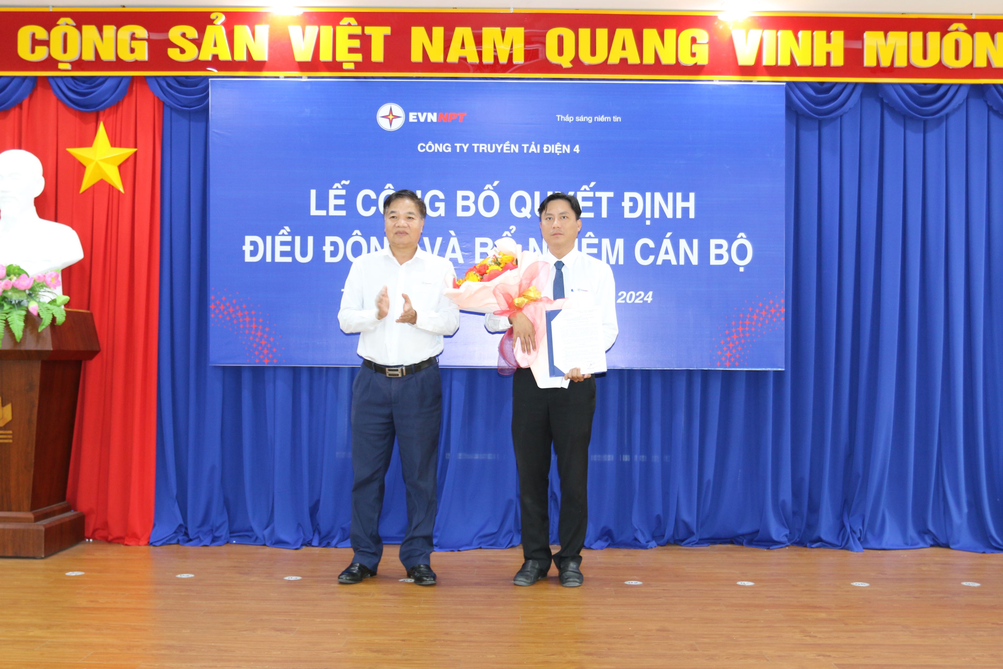 Mở đầu buổi lễ, ông Đống Tiến Long - Trưởng phòng Tổ chức và Nhân sự Công ty đã công bố Quyết Định số 2786/QĐ-PTC4 ngày 7/11/2024 về việc điều động cán bộ đến giữ chức vụ Phó Giám đốc TTĐ miền Đông 2 đối với Ông Nguyễn Xuân Bình.