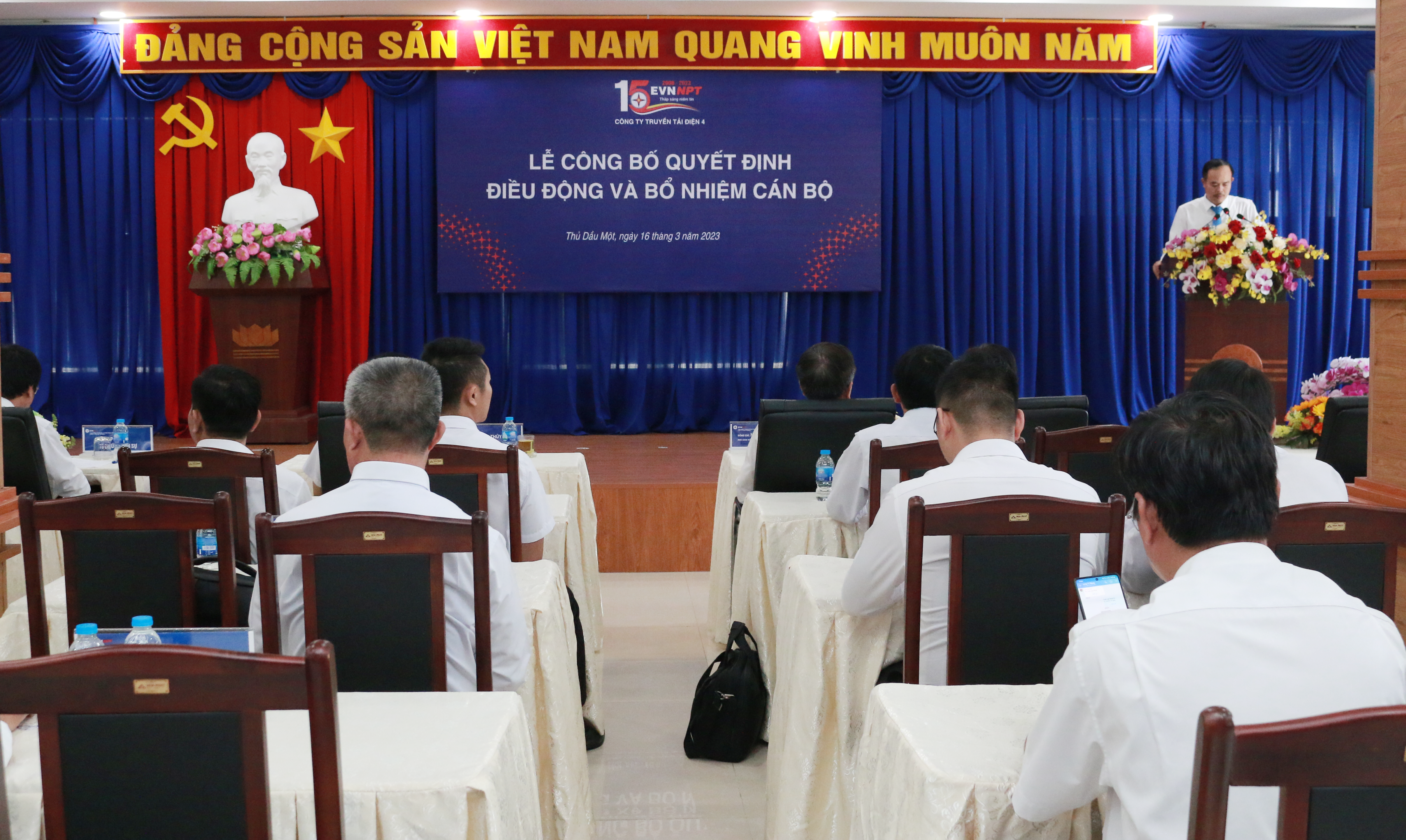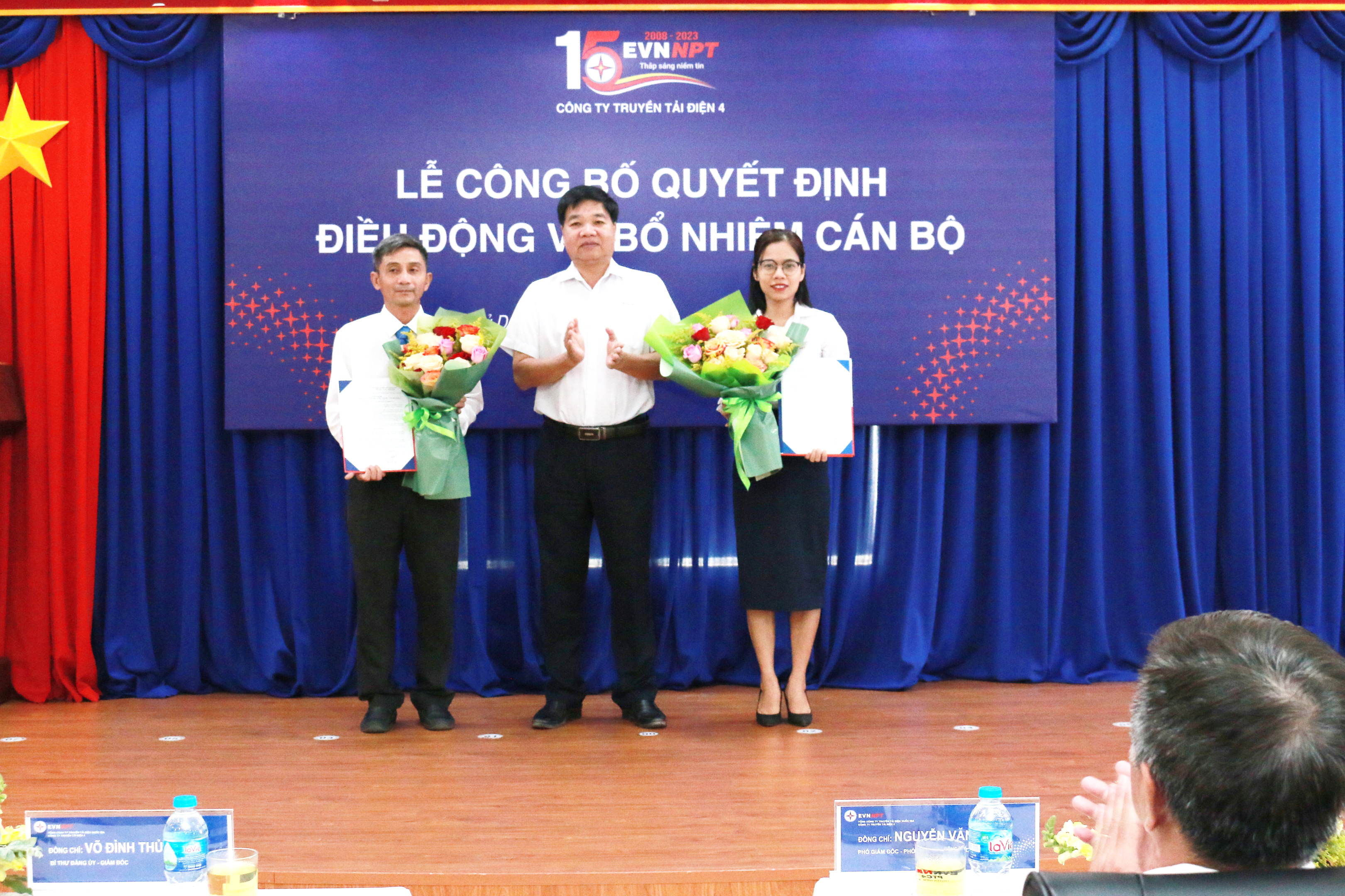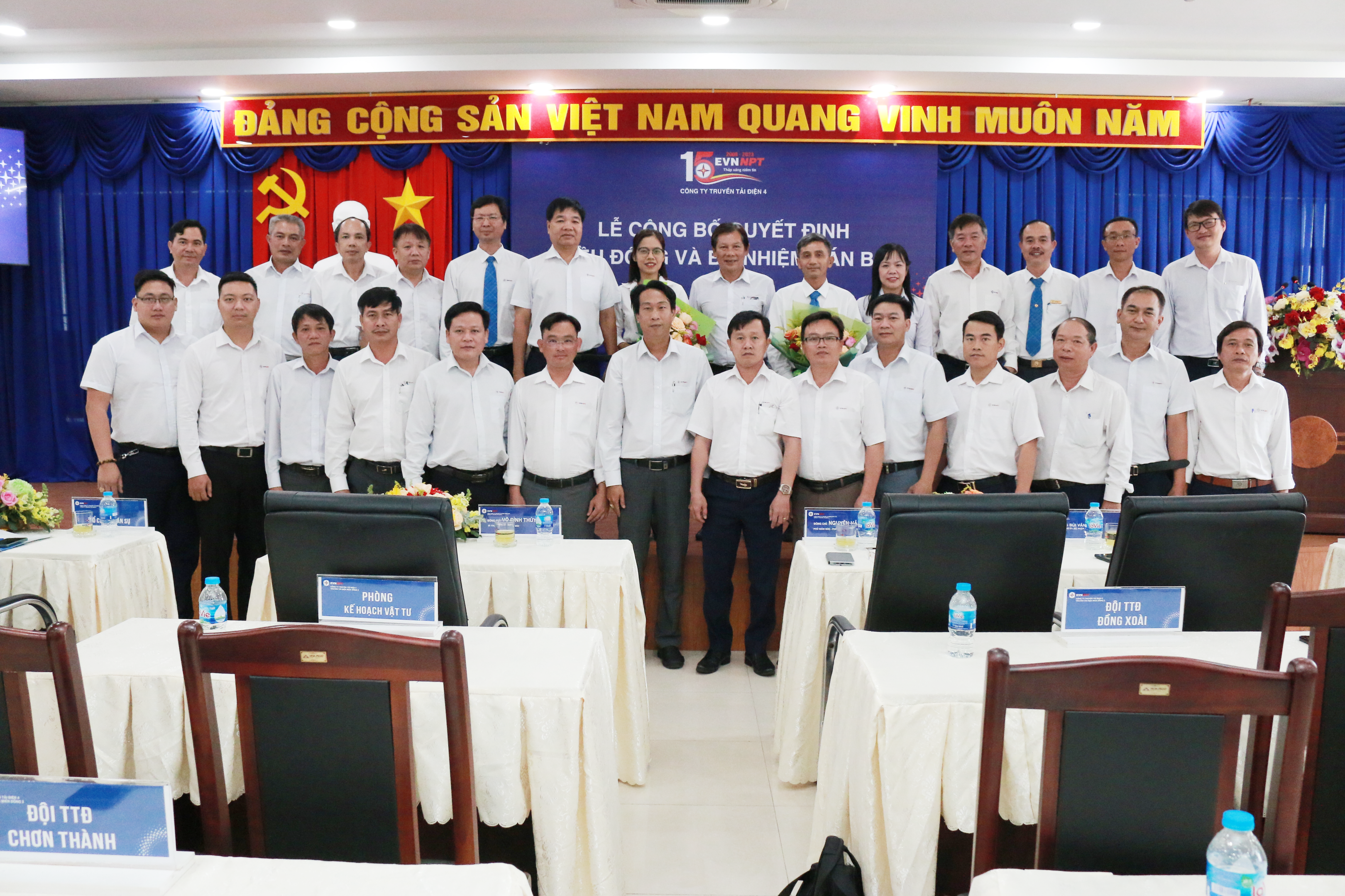 Ông Đống Tiến Long – Trưởng phòng TCNS Công ty công bố Quyết Định số 1197/QĐ-PTC4 ngày 9/3/2023 về việc điều động cán bộ đến giữ chức vụ Phó Giám đốc TTĐ miền Đông 2 đối với Ông Nguyễn Văn Lịch; Quyết định số 1198/QĐ-PTC4 ngày 9/3/2023 về việc bổ nhiệm Trưởng Phòng TCKT thuộc TTĐMĐ2 đối với Bà Đinh Thị Thu Hằng.