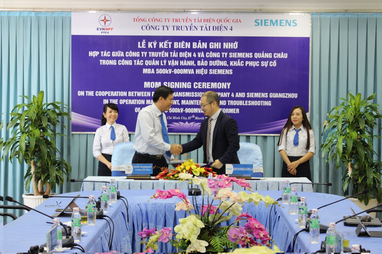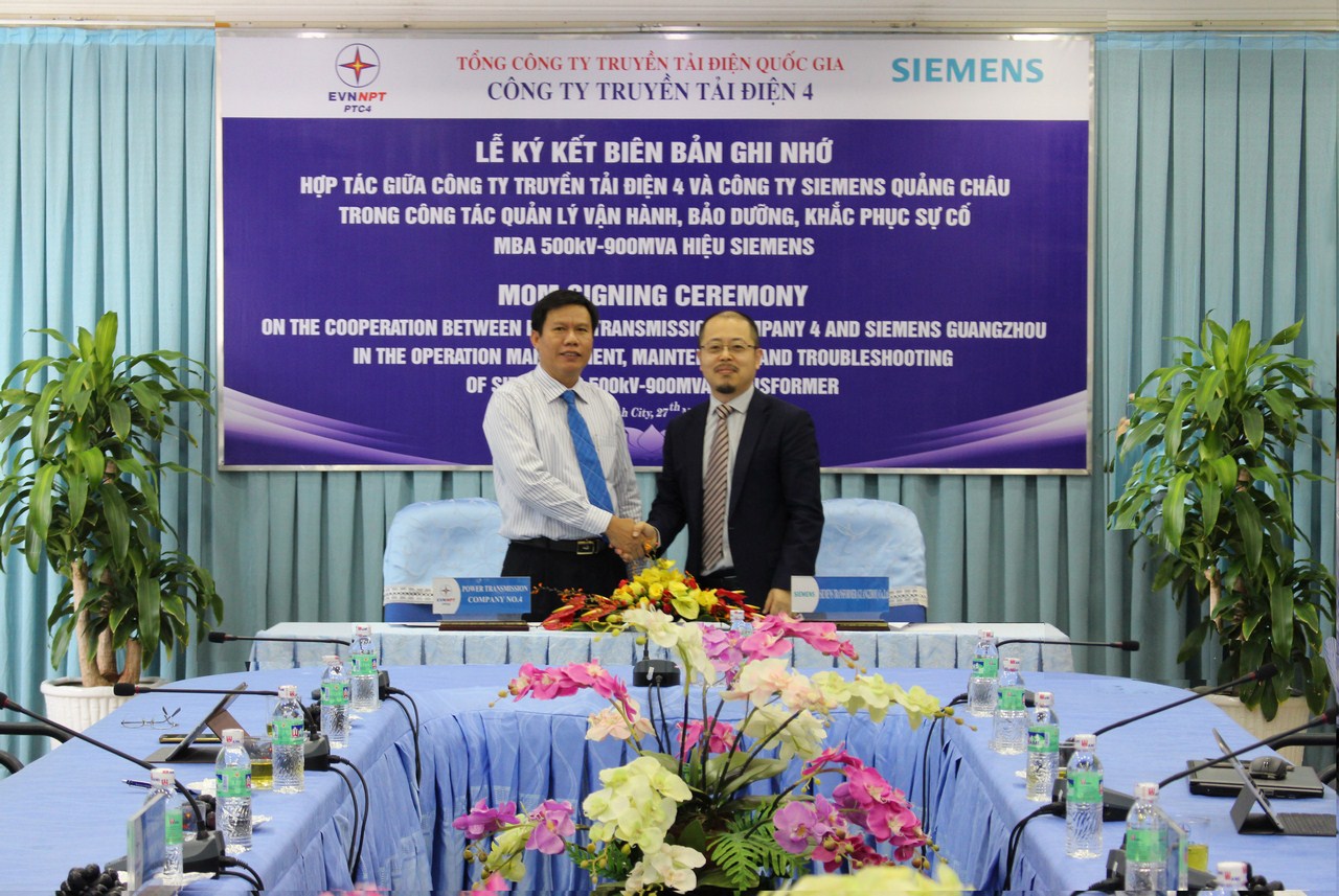 Tại buổi Lễ ký kết, Ông Nguyễn Xuân Hòa - Phó Giám đốc Công ty PTC4 và Ông Pang Zeng Jun - Tổng Giám đốc công ty Siemens Quảng Châu đã ký kết biên bản ghi nhớ hợp tác dưới sự chứng kiến hai bên. Qua đó, PTC4 và Công ty Siemens Quảng Châu tiếp tục hợp tác trên các lĩnh vực quản lý vận hành thường xuyên cho MBA 500kV-900MVA, bảo đảm an toàn tuyệt đối; phối hợp xử lý trong trường hợp xảy ra hư hỏng, bất thường khẩn cấp; Đào tạo chuyên sâu về vận hành, bảo dưỡng MBA Siemens theo nội dung, kế hoạch đã thống nhất.