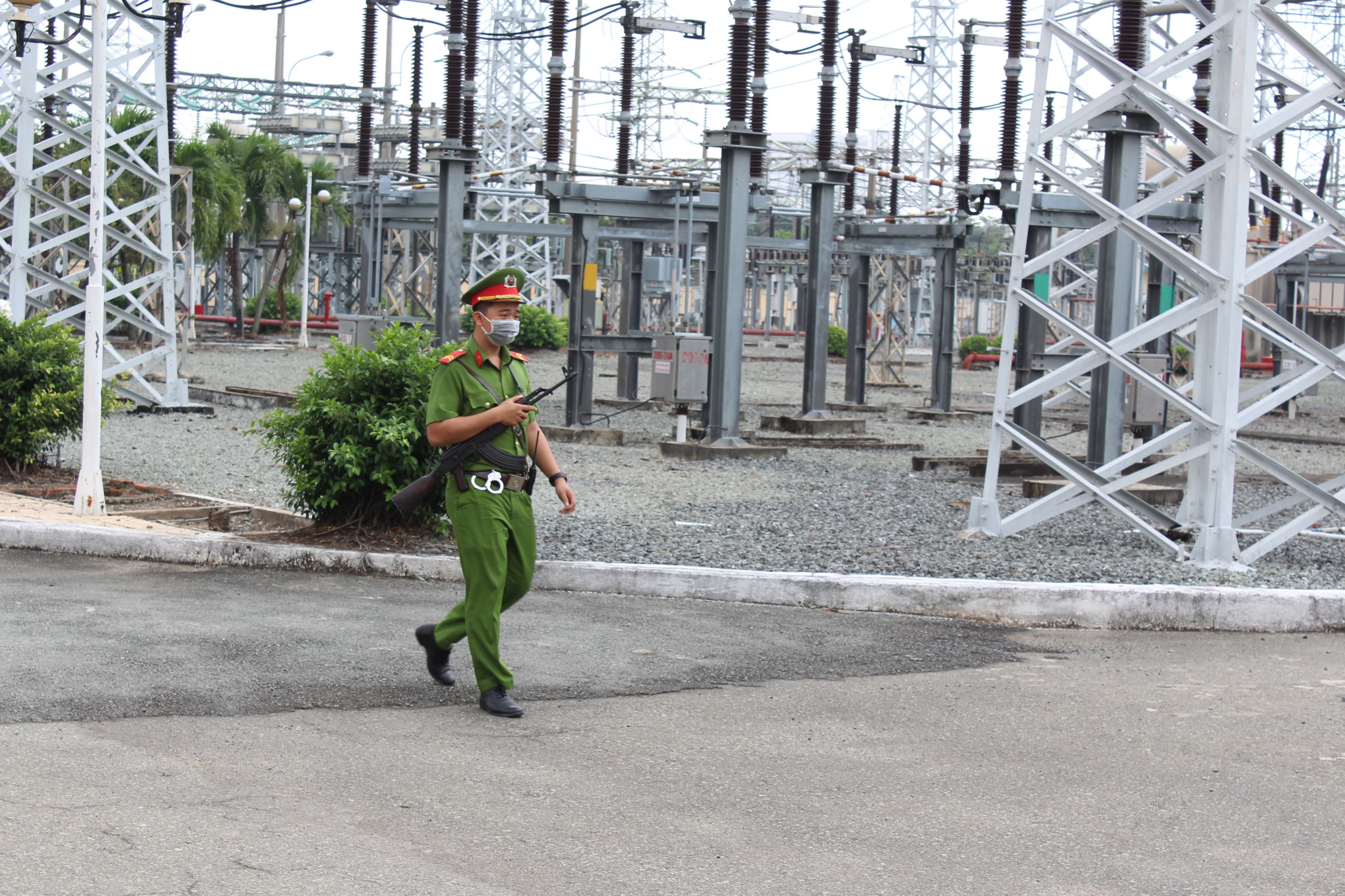 Chiến sĩ Cảnh sát bảo vệ tuần tra tại Trạm 500kV Phú Lâm
