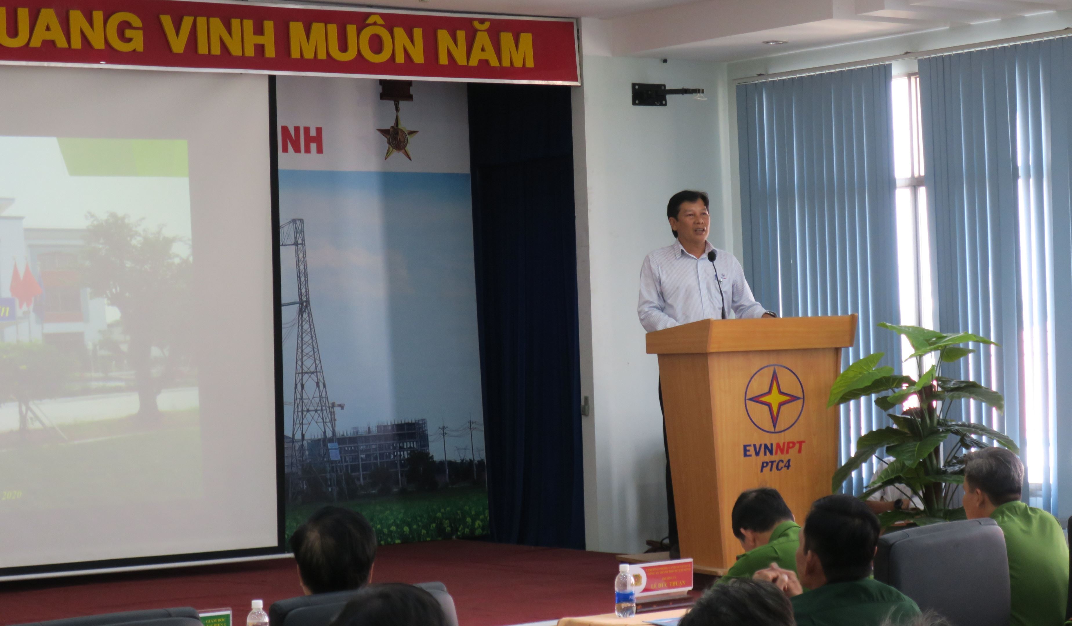 Đồng chí Bùi Văn Hoàng – Bí thư Chi bộ, Giám đốc TTĐHCM hướng dẫn an toàn điện cho lực lượng Cảnh sát bảo vệ Trạm 500kV Phú Lâm