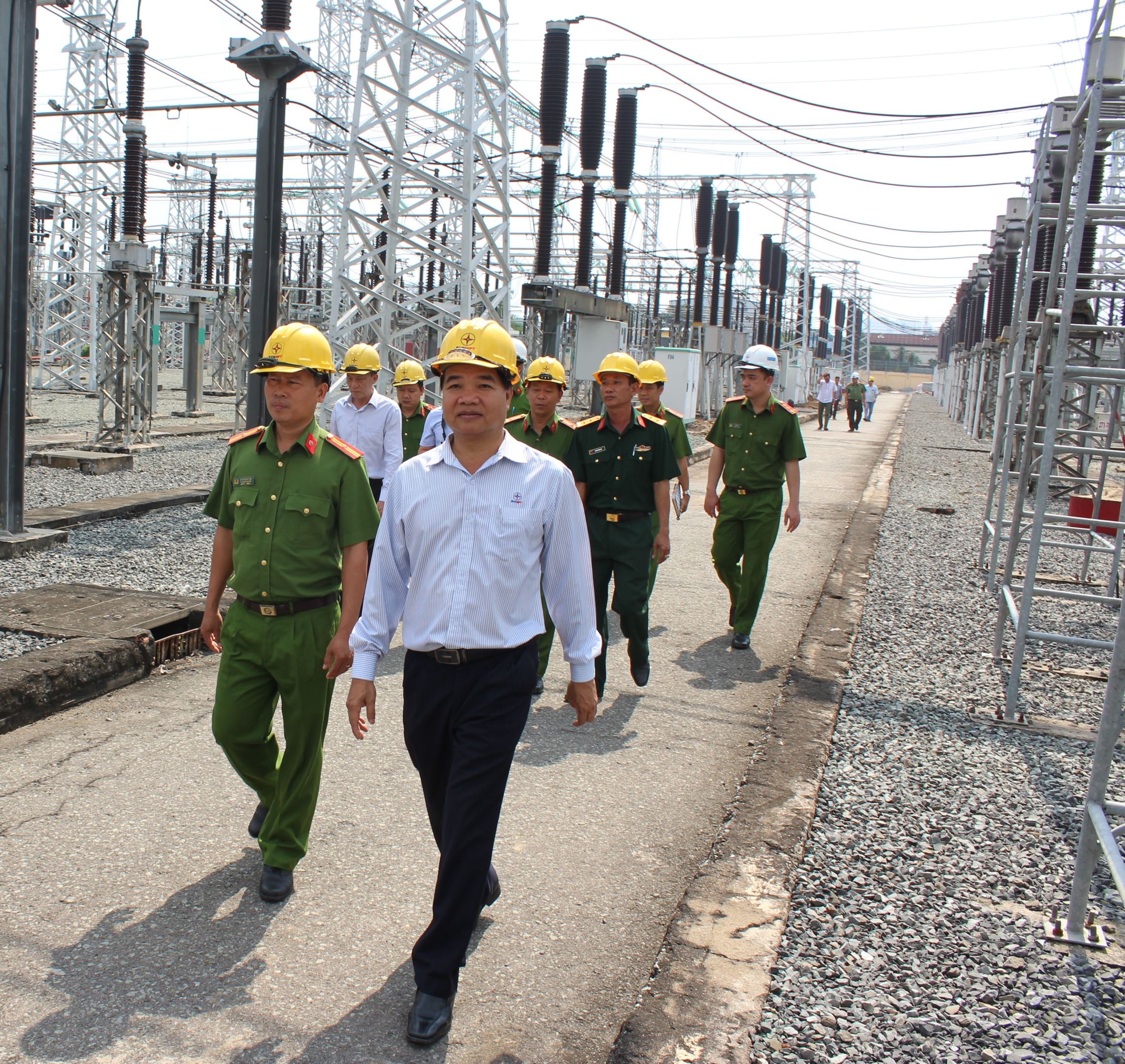 Lãnh đạo các cấp tham quan thực tế tại Trạm 500kV Phú Lâm về tình hình địa bàn và triển khai lực lượng