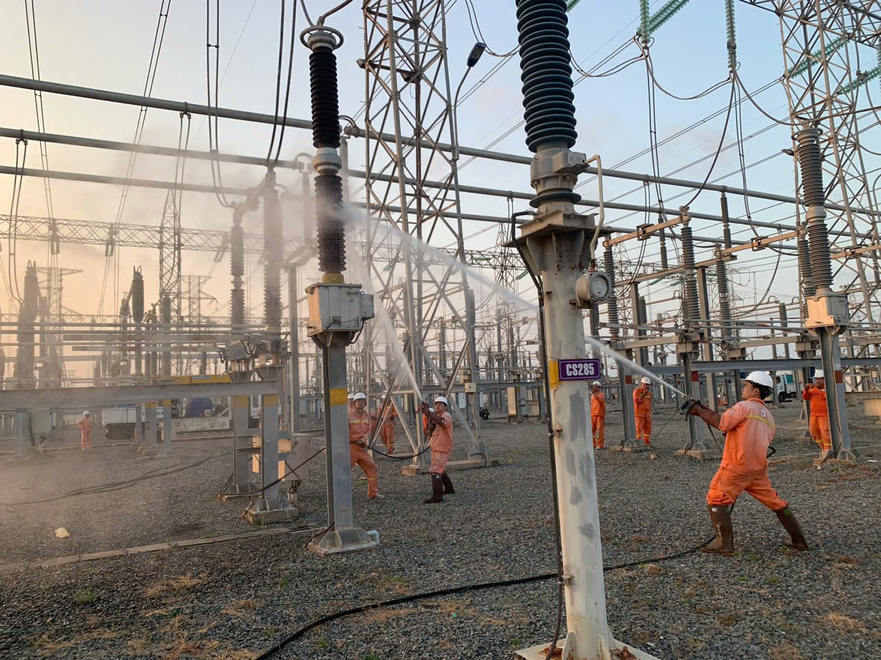 Thực hiện công tác vệ sinh cách điện bằng nước áp lực cao (vệ sinh hotline) tại Trạm biến áp 500kV Duyên Hải