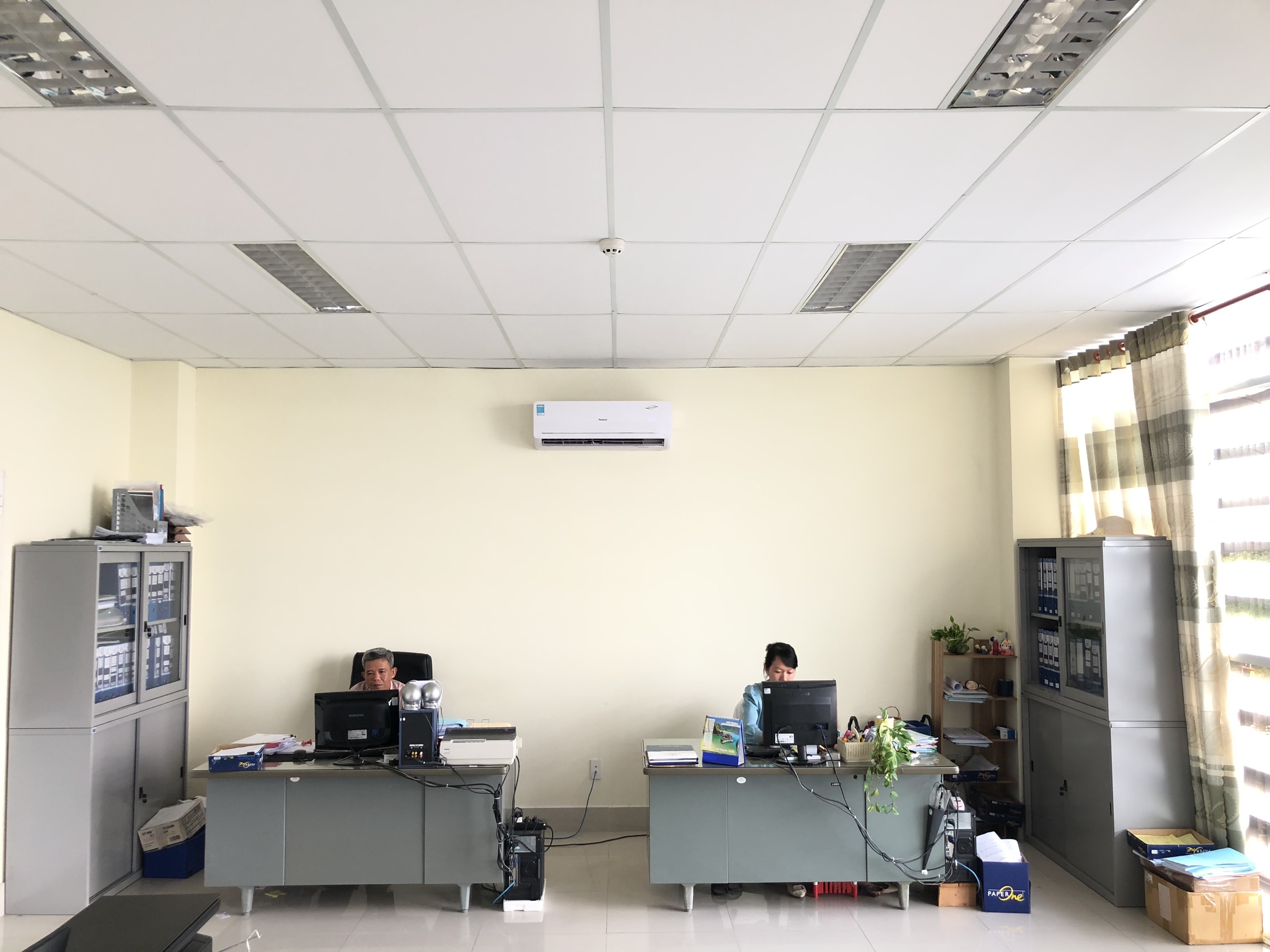 CBCNV Truyền tải điện miền Tây 1 tắt đèn và đặt nhiệt độ điều hòa 27°C để tiết kiệm điện tại nơi làm việc.