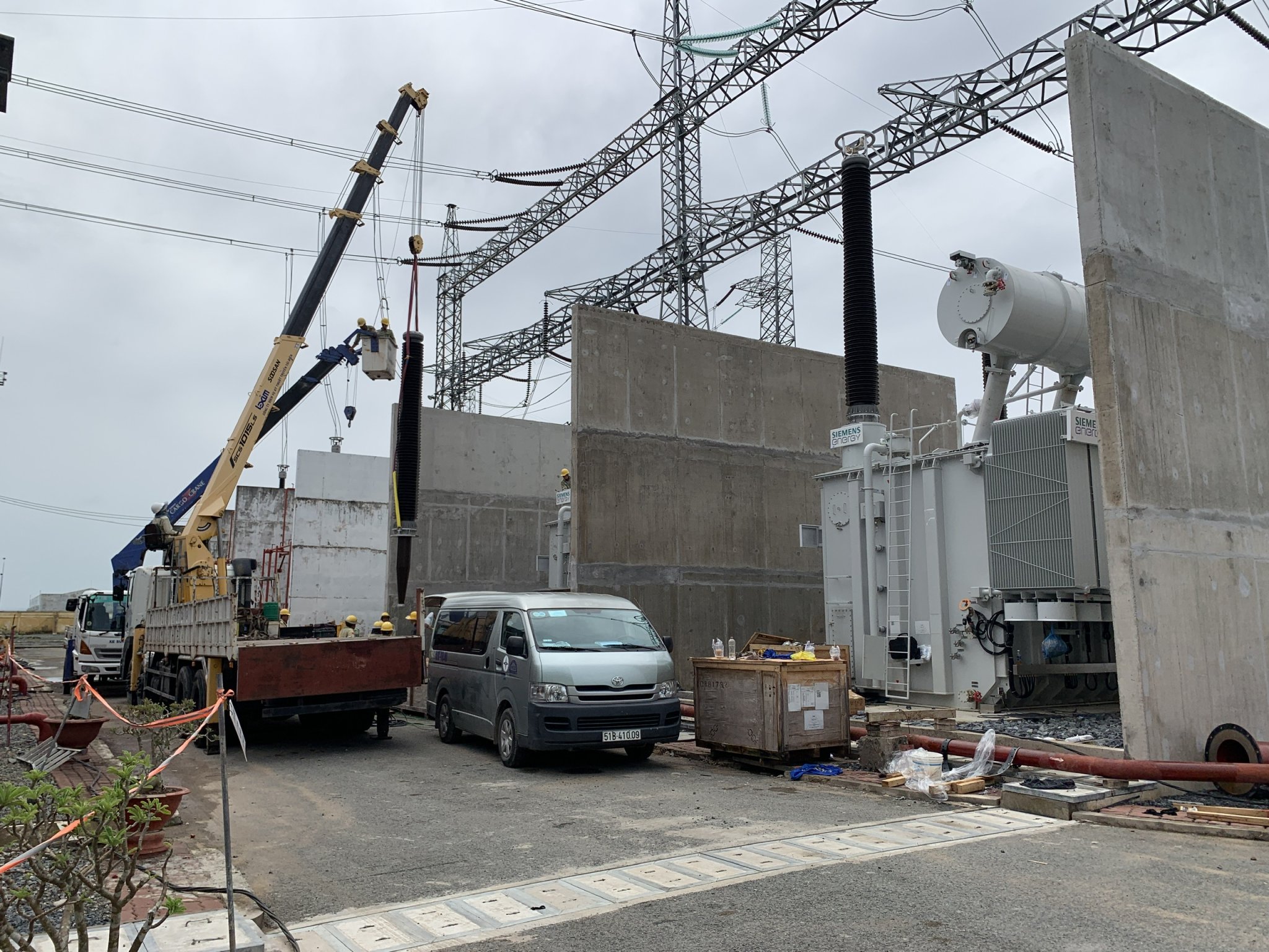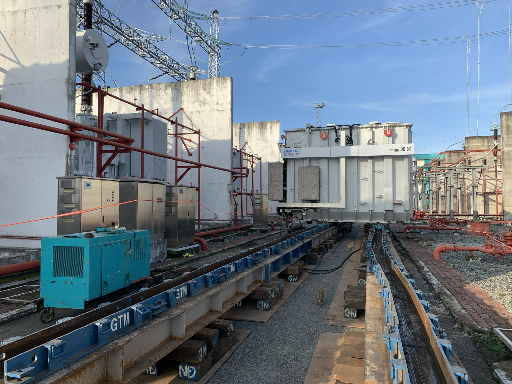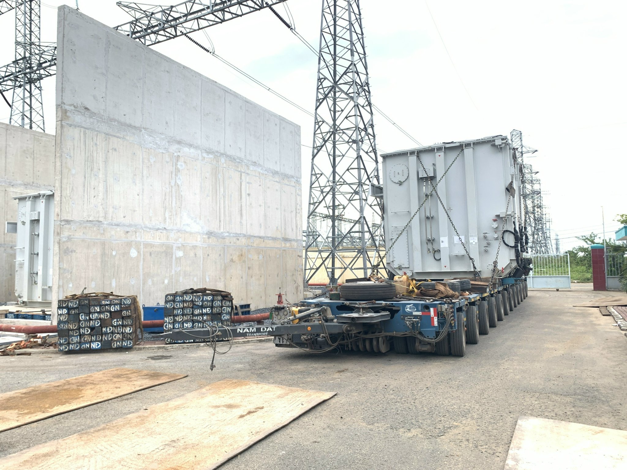 Đưa máy biến áp 900MVA vào vào bệ, chuẩn bị đấu nối