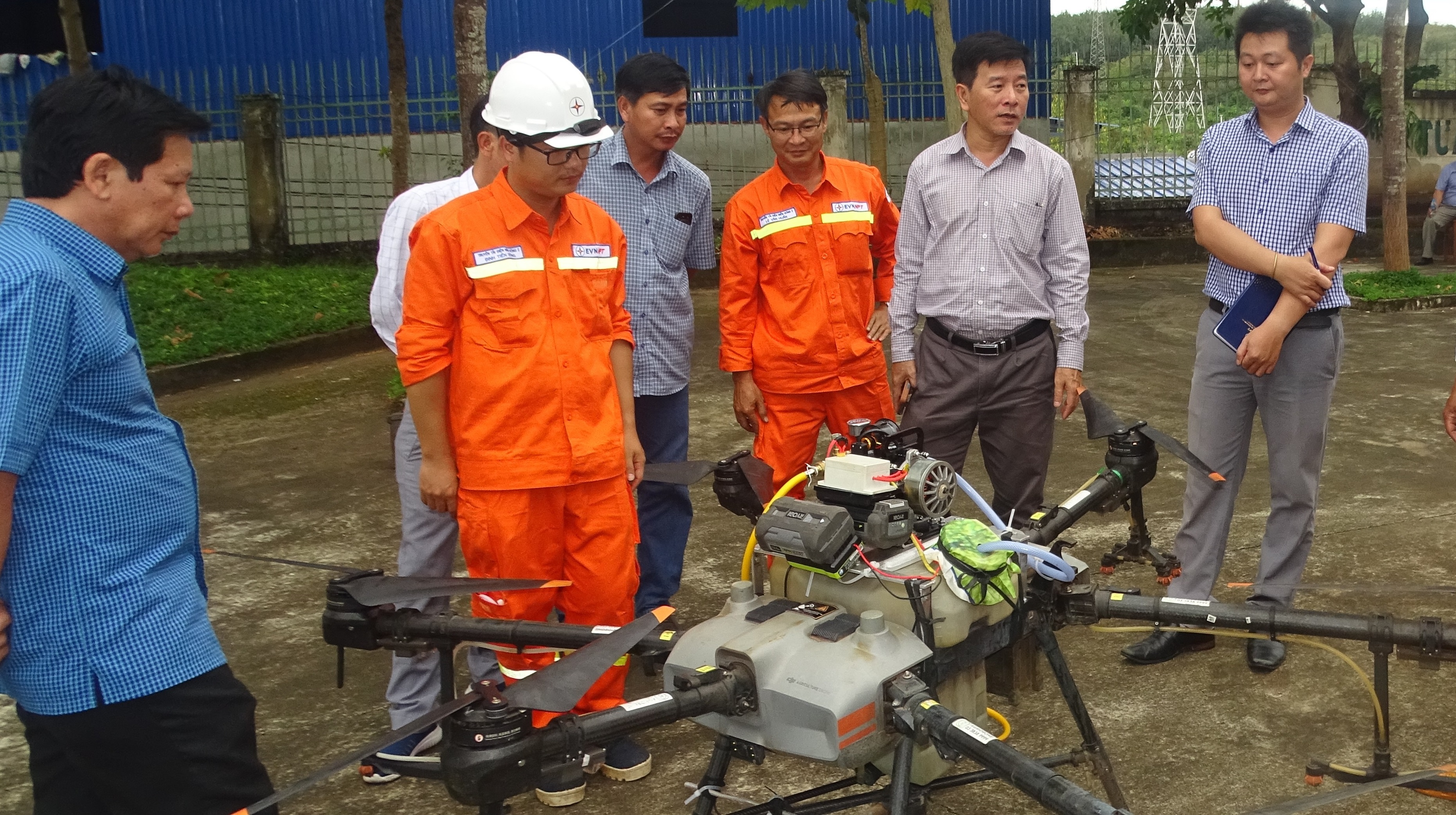 Đội trưởng Trịnh Đình Chính kiểm tra, chỉ đạo Tổ nghiên cứu và phát triển bay UAV phục vụ công tác QLVH đường dây.