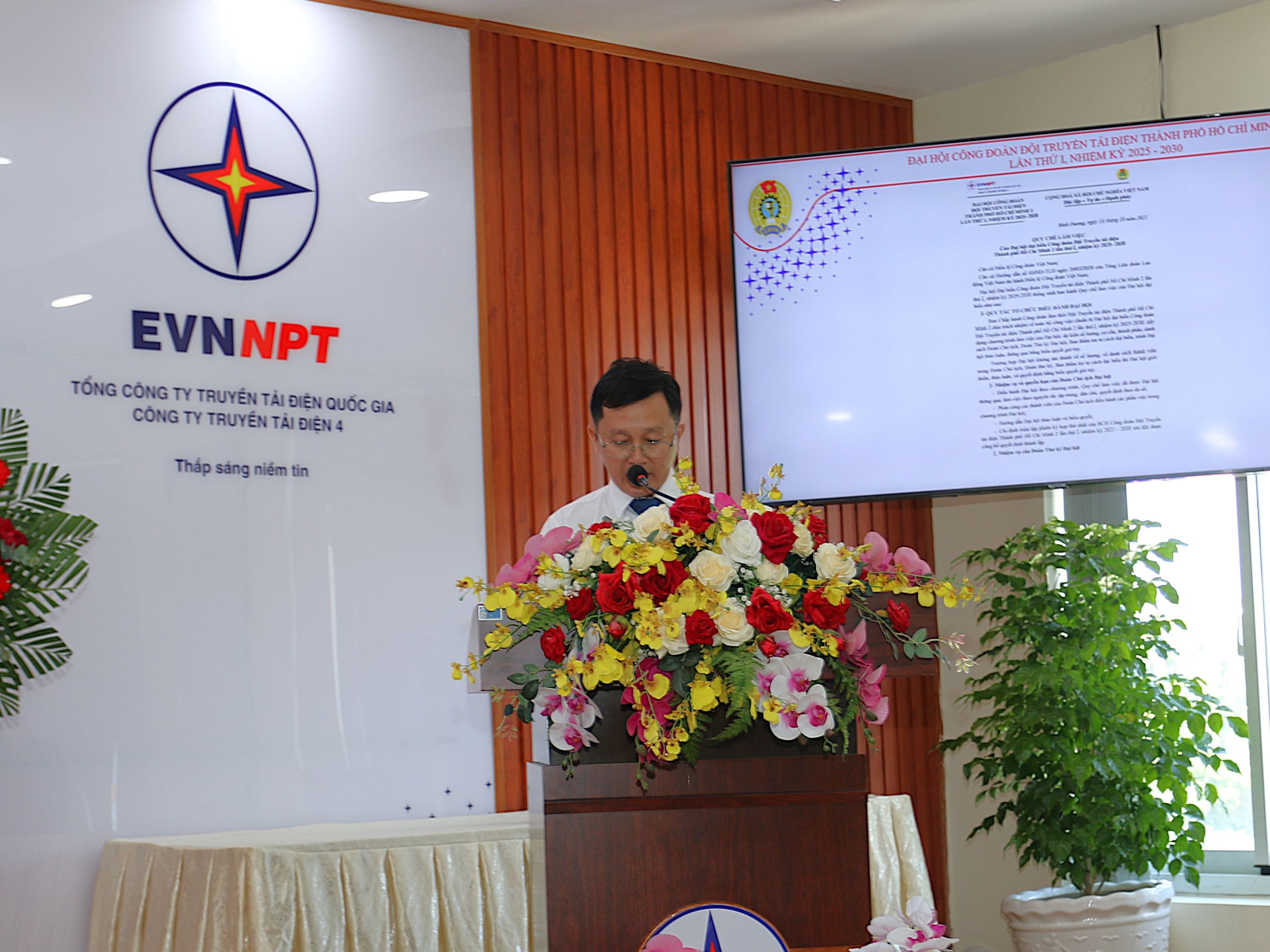Anh Nguyễn Tuấn Hải – Tổ trưởng Tổ QLVH TBA 500kV Tân Định phát biểu tại Đại hội Công đoàn Đội TTĐ TPHCM 2