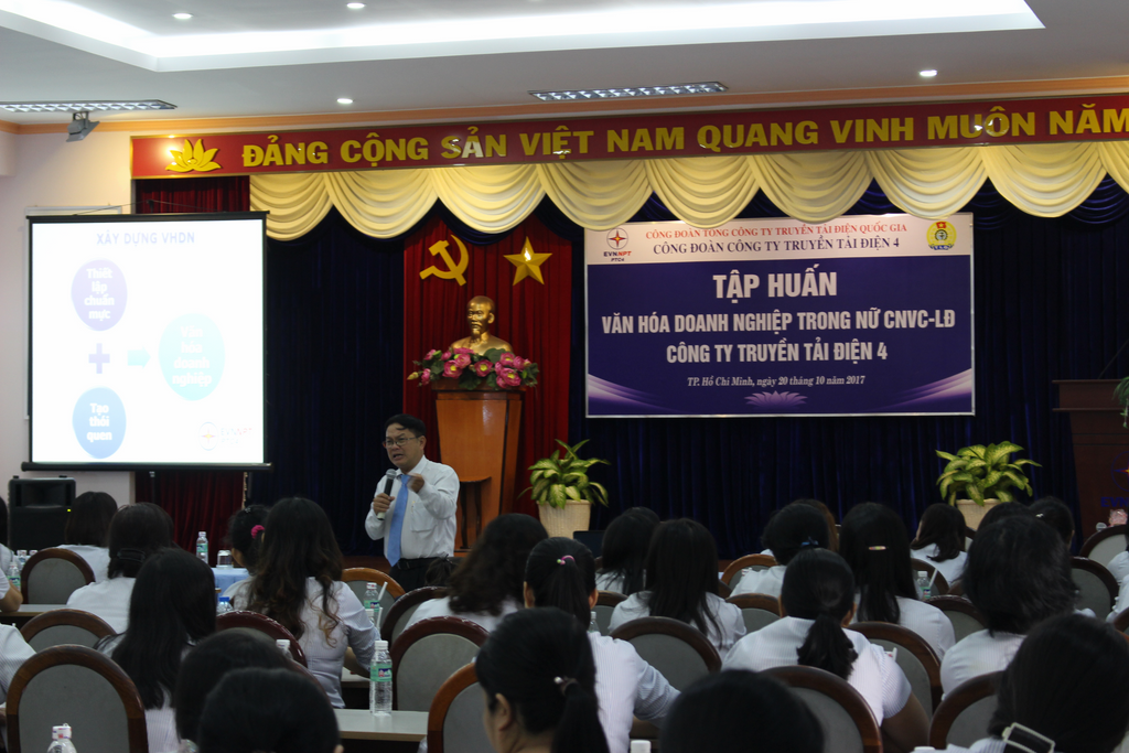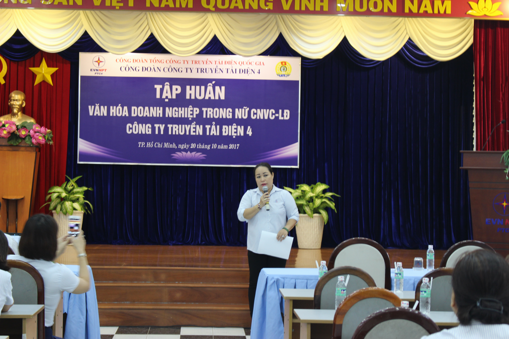 Đến tham dự buổi tập huấn, Ban nữ công đã mời Thạc sỹ Hà Trung Thành - Giảng viên học viện cán bộ Thành phố Hồ Chí Minh và hơn 100 nữ CNVC-LĐ thuộc PTC4.
