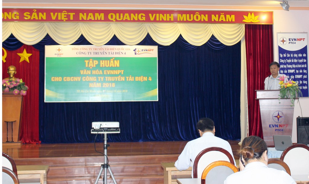 Chủ trì và trực tiếp hướng dẫn tại lớp tập huấn là ông Võ Đình Thủy, Bí thư Đảng ủy, Giám đốc PTC4. Nội dung tập huấn gồm có 02 phần, phần 1 là Văn hóa doanh nghiệp và phần 2 là Văn hóa EVNNPT.