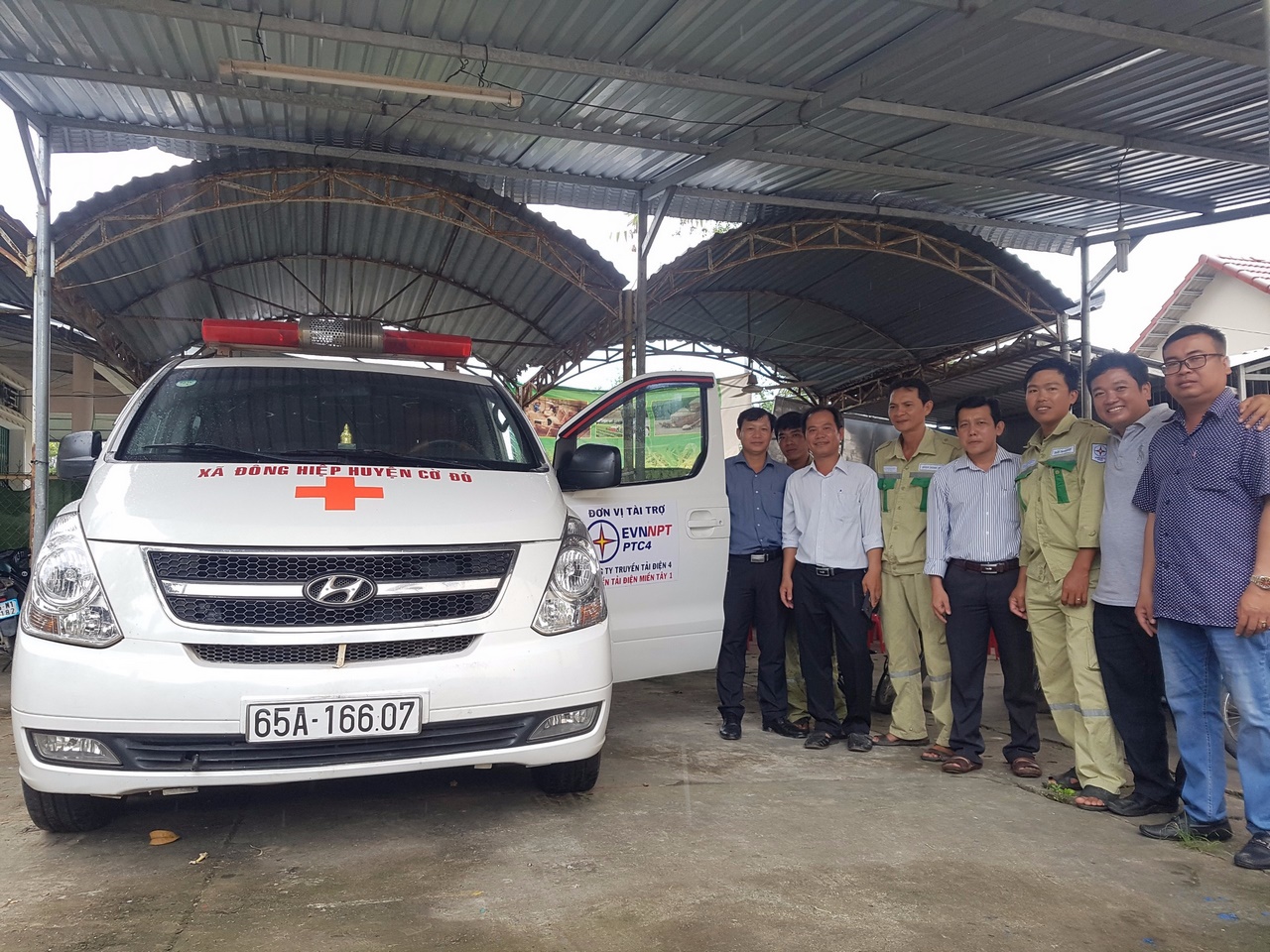 Logo EVNNPT-PTC4 Truyền niềm tin mang đậm nét Văn hóa doanh nghiệp của Công ty Truyền tải điện 4 trên xe cứu thương