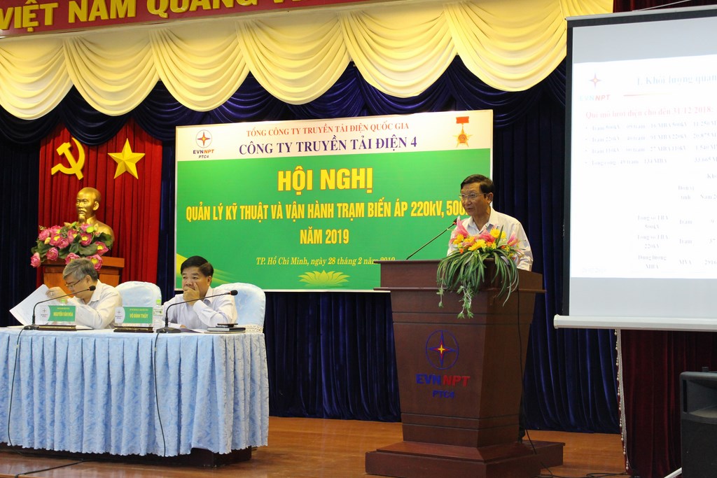Tại Hội nghị, Ông Huỳnh Hữu Phúc, Phó Trưởng phòng Kỹ thuật Công ty trình bày báo cáo, đánh giá tổng kết công tác quản lý kỹ thuật, vận hành TBA 220kV, 500kV năm 2018 và đề xuất định hướng phương hướng công tác quản lý kỹ thuật, vận hành TBA 220kV, 500kV năm 2018 phù hợp tình hình yêu cầu vận hành năm 2019, phân tích nguyên nhân về mặt hạn chế, phân tích các nguyên nhân sự cố trong năm 2018, đánh giá các nguy cơ sự cố TBA 220kV, 500kV năm 2019; Giám đốc 06 Truyền tải điện khu vực báo cáo kết quả thực hiện các giải pháp quản lý kỹ thuật đã xác định trong hội nghị quản lý kỹ thuật năm 2018 theo kết luận Hội nghị quản lý kỹ thuật năm 2018, các nội dung chưa làm được, nguyên nhân và biện pháp khắc phục; phân tích, đề xuất bổ sung các giải pháp nhằm ngăn ngừa sự cố và vận hành không sự cố TBA 220kV, 500kV năm 2019.