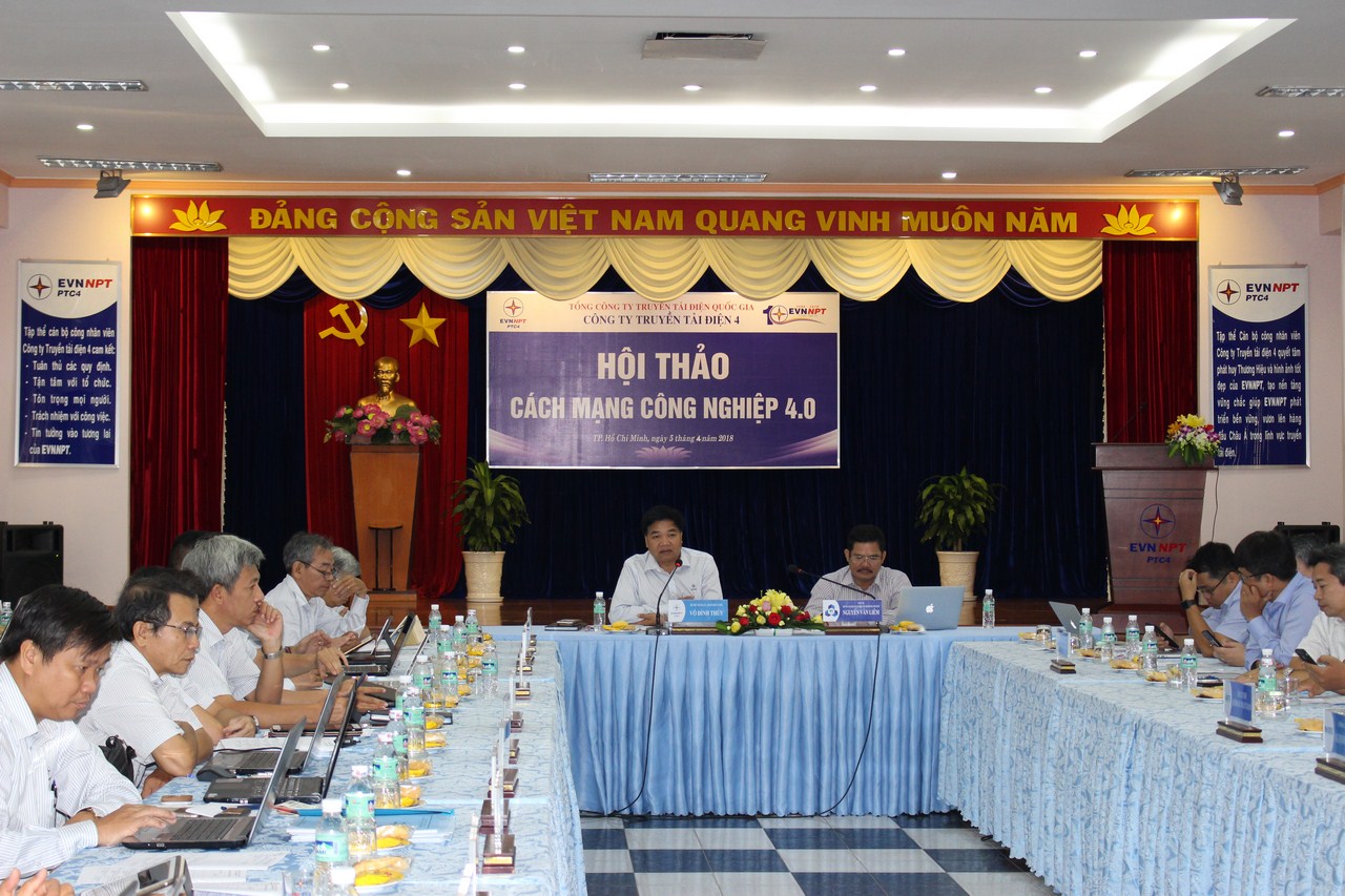 Vào lúc 8g00’ ngày 05/04/2018, tại trụ sở Công ty Truyền tải điện 4 (PTC4 ) đã diễn ra Hội thảo với chủ đề “ Cách mạng Công nghiệp 4.0 ” đến dự Hội thảo gồm có Ông Võ Đình Thủy – Bí Thư Đảng ủy, Giám đốc Công ty và Ông Nguyễn Văn Liêm – PGS Tiến sĩ, Trưởng Phòng Quản trị thiết bị Trường Đại học Bách khoa Thành phố Hồ Chí Minh ( ĐHBK TPHCM ) đồng chủ trì Hội thảo.