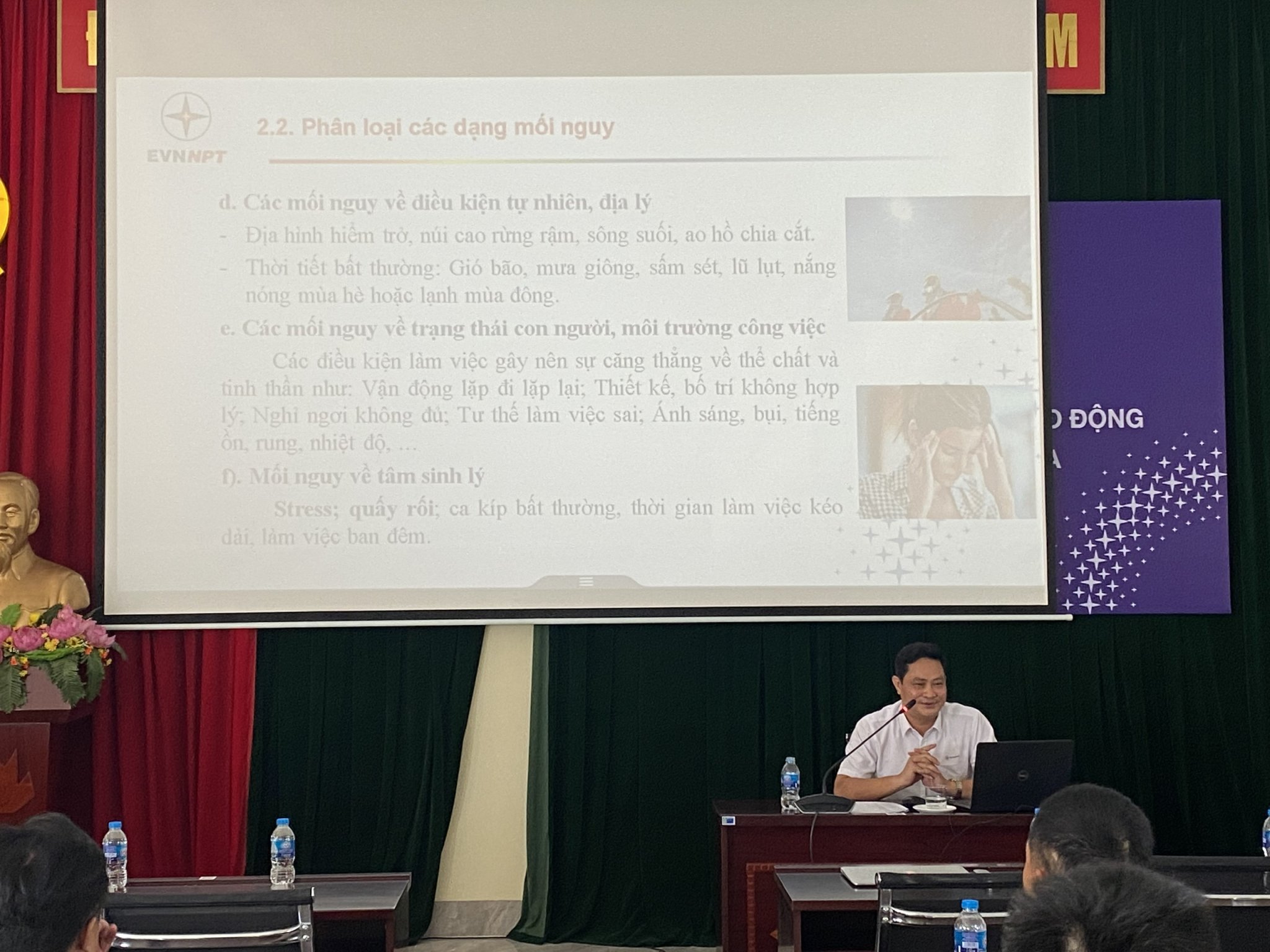 Ngày 15/9/2022, các học viên được Ông Phan Lê Nhân- Phó Trưởng ban An Toàn –EVNNPT trang bị các kiến thức về phân loại các dạng mối nguy; đánh giá rủi ro, xác định các biện pháp kiểm soát rủi ro bổ sung; tổng hợp kết quả đánh giá rủi ro; quản lý, kiểm soát rủi ro; Phổ biến rút kinh nghiệm các trường hợp rủi ro điển hình trong sản xuất và cách phòng tránh.