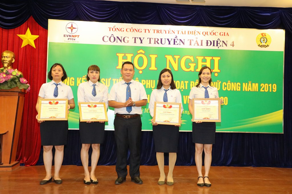 Ông Đống Tiến Long – Phó Chủ tịch Công đoàn Công ty trao giấy khen của EVNNPT cho các cá nhân đạt thành tích hai giỏi năm 2019.