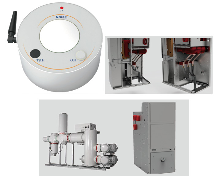 - Đối với công nghệ giám sát nhiệt độ thiết bị trong tủ hợp bộ, các cảm biến phóng điện cục bộ không dây 5 trong 1 loại PTSPD4000W: có 05 chức năng chính là phát hiện các tín hiệu phóng điện cục bộ bằng phương pháp UHF, UltraSonic, TEV, kết hợp với cảm biến nhiệt độ và độ ẩm môi trường để giám sát cho các tủ hợp bộ trung và hạ thế.