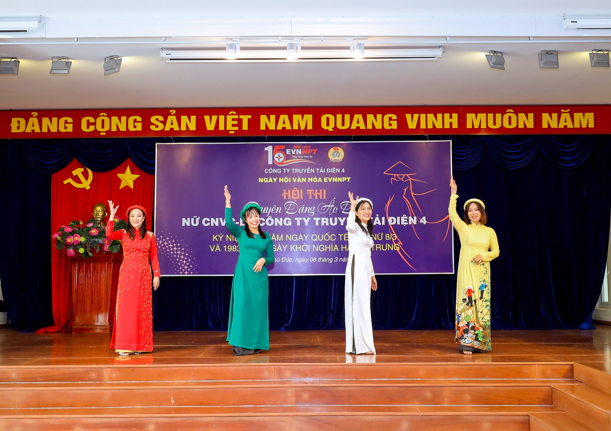 Kỷ niệm ngày QTPN năm nay, Công đoàn và Ban nữ công PTC4 tổ chức Ngày hội Văn hóa EVNNPT với mục đích đẩy mạnh phong trào “Xây dựng người Phụ nữ Việt Nam thời đại mới” trong Nữ CNVC Công ty, tạo không khí vui tươi phấn khởi trong lao động sản xuất tại đơn vị. Đồng thời hưởng ứng cuộc vận động của Trung ương Hội liên hiệp Phụ nữ Việt Nam về “Tuần lễ áo dài” từ ngày 01/03/2023 đến 08/03/2023, nữ CNVC mặc áo dài tham dự các hoạt động, lễ kỷ niệm, ngày truyền thống, hội họp và các sự kiện lớn của đơn vị.