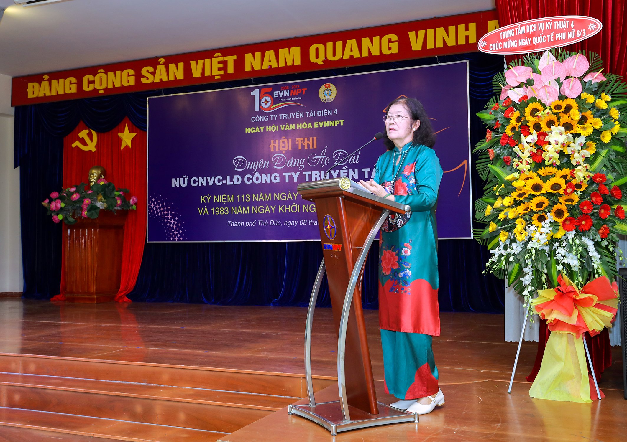 Tại Hội thi, Bà Đặng Thị Hải Yến - Trưởng Ban nữ công PTC4 đã phát biểu: Hội thi diễn ra trong ngày Quốc tế Phụ nữ 8-3 là dịp để tôn vinh nét văn hóa truyền thống của Phụ nữ Việt Nam và lan tỏa đến Phụ nữ Thế giới; ôn lại sơ nét về tinh thần kiên cường, quật khởi của Phụ nữ Việt Nam qua cuộc khởi nghĩa của Hai Bà Trưng; là dịp giao lưu với nhau giữa các nữ CNVCLĐ tại Công ty và các đơn vị cơ sở trực thuộc cùng với các chị em nữ CNVCLĐ của TTDVKT4. Đến với Hội thi có 07 đội thi đến từ các tổ nữ công của 06 đơn vị Truyền tải điện trực thuộc, Cơ quan Công ty và TTDVKT4. Trong hai phần thi Duyên dáng áo dài và cắm hoa, các đội thi đã cống hiến màn trình diễn áo dài thật duyên dáng, thanh lịch, sáng tạo, tôn vinh được nét đẹp của người Phụ nữ Việt nam và nêu bật được ngành Truyền tải điện một cách rõ nét. Trong số các chị, dù đã có người chưa từng bước lên sân khấu nhưng trong phần thi hôm nay đã thể hiện được bản lĩnh trình diễn một cách xuất sắc, tươi tắn, đem lại cho đội thi của mình nhiều màu sắc, nhiều bộ áo dài đẹp lung linh, nền nã, trang trọng. Phần thi cắm hoa cũng không kém phần đặc sắc, mỗi đội đều có một chủ đề cắm hoa khác nhau, các ý tưởng đều gắn liền với ngành nghề, với người phụ nữ Việt Nam và hướng đến kỷ niệm 15 năm thành lập Tổng Công ty Truyền tải điện Quốc gia. Mỗi một tác phẩm đều có tính nghệ thuật và sáng tạo, là sự chăm chút, tỉ mỉ với từng vật liệu kèm theo, là sự lựa chọn những bông hoa tươi đẹp nhất để tạo ra tác phẩm nghệ thuật hoàn hảo nhất cho Hội thi. Đến với Hội thi, các chị nữ CNVCLĐ của TTDVKT4 cũng đã thể hiện phần thi của đội mình rất xuất sắc, các chị em rất tự tin khi thực hiện phần thi của mình và giao lưu với một cảm xúc như được trở về ”ngôi nhà PTC4”. Trước ngày thi, dù rất bận với công việc chuyên môn nhưng các chị em đã cố gắng chuẩn bị tập dợt kỹ lưỡng nhằm mang đến cho Hội thi những tác phẩm đẹp mắt và đầy ý nghĩa.