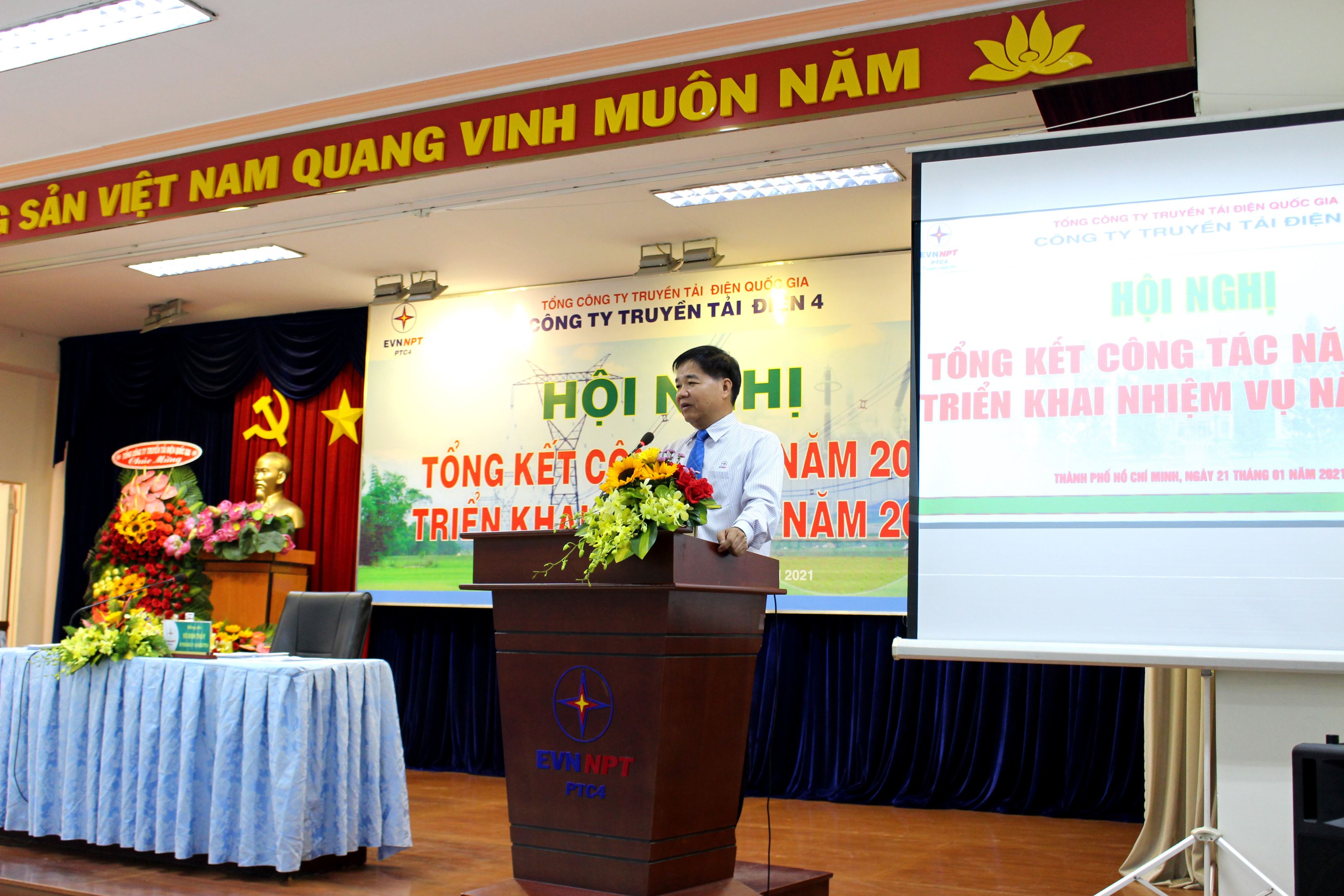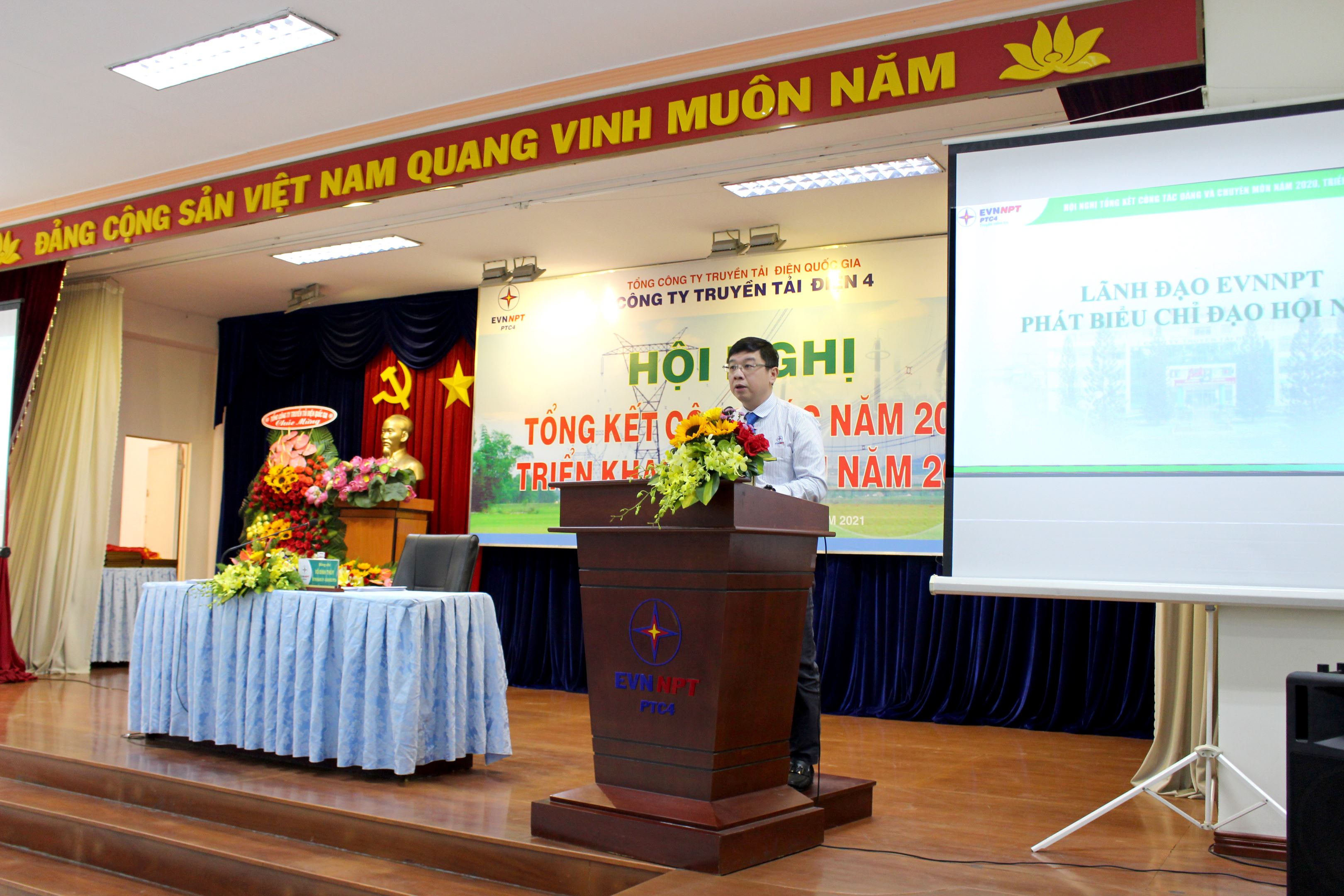 Phát biểu chỉ đạo tại Hội nghị, đ/c Phạm Lê Phú, Phó bí thư Đảng ủy, Tổng Giám đốc EVNNPT biểu dương tinh thần đoàn kết phấn đấu hoàn thành nhiệm vụ của tập thể CBCNV PTC4 đã góp phần hoàn thành mục tiêu chung của EVNNPT trong giai đoạn 5 năm qua và trong năm 2020, kể cả trong công tác chuyên môn cũng như công tác Đảng. Đồng chí Phạm Lê Phú mong muốn PTC4 tiếp tục phát huy những thế mạnh, rút kinh nghiệm những vấn đề còn tồn tại để năm 2021 và những năm tiếp theo cùng với EVNNPT hoàn thành xuất sắc nhiệm vụ được giao, mục tiêu phải đạt được là đảm bảo vận hành an toàn, không để xảy ra sự cố chủ quan, đặc biệt không để xảy ra sự cố gây mất điện cho phụ tải; đẩy mạnh ứng dụng khoa học công nghệ, tập trung thực hiện Chủ đề năm 2021 là chuyển đổi số nhằm giảm tối đa công tác báo cáo bằng giấy, đảm bảo tinh gọn quy trình xử lý công việc để tăng năng suất lao động, tiến tới hiện đại hóa trong công tác quản lý vận hành, đảm bảo thực hiện thành công kế hoạch năm 2021.
