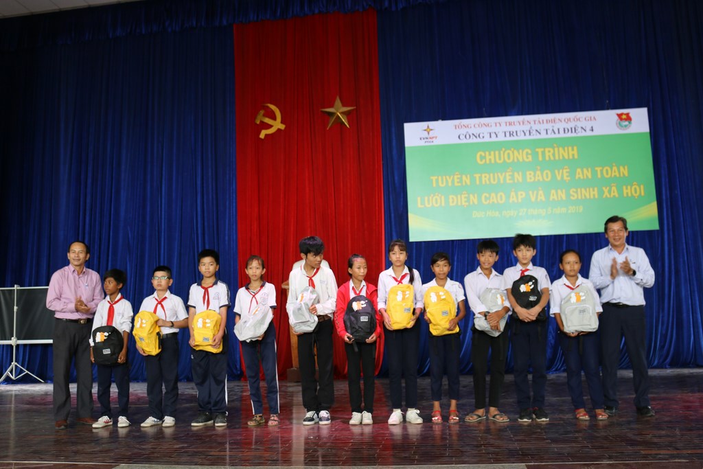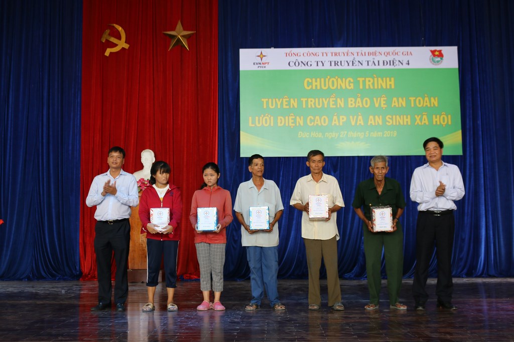 Ngoài các hoạt động tuyên truyền, để chung tay góp sức thực hiện công tác an sinh xã hội tại địa phương, Đoàn thanh niên Công ty Truyền tải điện 4 đã trao tặng 80 phần quà, với tổng giá trị 24 triệu đồng dành tặng cho các em học sinh vượt khó, học giỏi và các gia đình chính sách, có hoàn cảnh khó khăn, chấp hành tốt và tích cực hỗ trợ Công ty Truyền tải điện 4 trong việc phát hiện, thông tin, cảnh báo các hành vi vi phạm, giúp Công ty, địa phương kịp thời xử lý, bảo vệ an toàn cho lưới điện cao áp, đảm bảo cho việc cung cấp điện thời gian qua.