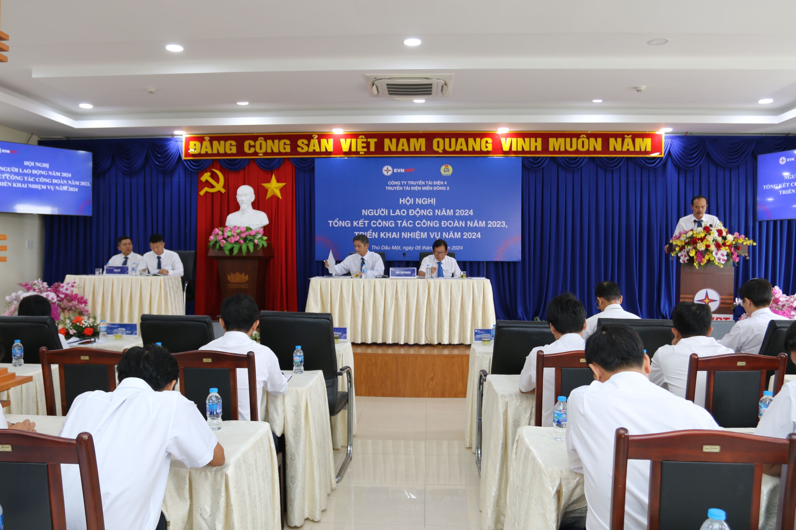 Hội nghị Tổng kết công tác hoạt động Công đoàn năm 2023 và hội nghị người lao động năm 2024 là hình thức dân chủ ở doanh nghiệp, nhằm phát huy quyền dân chủ của Người lao động (NLĐ), tạo điều kiện để NLĐ được hiểu, tham gia ý kiến, quyết định và giám sát những vấn đề có liên quan đến quyền, lợi ích, nghĩa vụ và trách nhiệm của NLĐ. Xây dựng mối quan hệ lao động hài hoà, ổn định, góp phần hoàn thành nhiệm vụ chính trị của toàn Truyền tải điện miền Đông 2. Thực hiện Chỉ thị liên tịch của Công ty Truyền tải điện 4 về việc thực hiện Quy chế dân chủ cơ sở tại nơi làm việc năm 2024. Sáng ngày 5/3/2024 Truyền tải điện miền Đông 2 đã tổ chức thành công Hội nghị Người lao động năm 2024; Tổng kết hoạt động công đoàn năm 2023, triển khai nhiệm vụ năm 2024. Trước đó, từ ngày 20/1/2024 đến ngày 31/01/2024 các phòng, đội, trạm, tổ TTLĐ thuộc Truyền tải điện miền Đông 2 cũng đã tổ chức thành công Hội nghị Tổng kết công tác hoạt động Công đoàn năm 2023 và hội nghị người lao động năm 2024