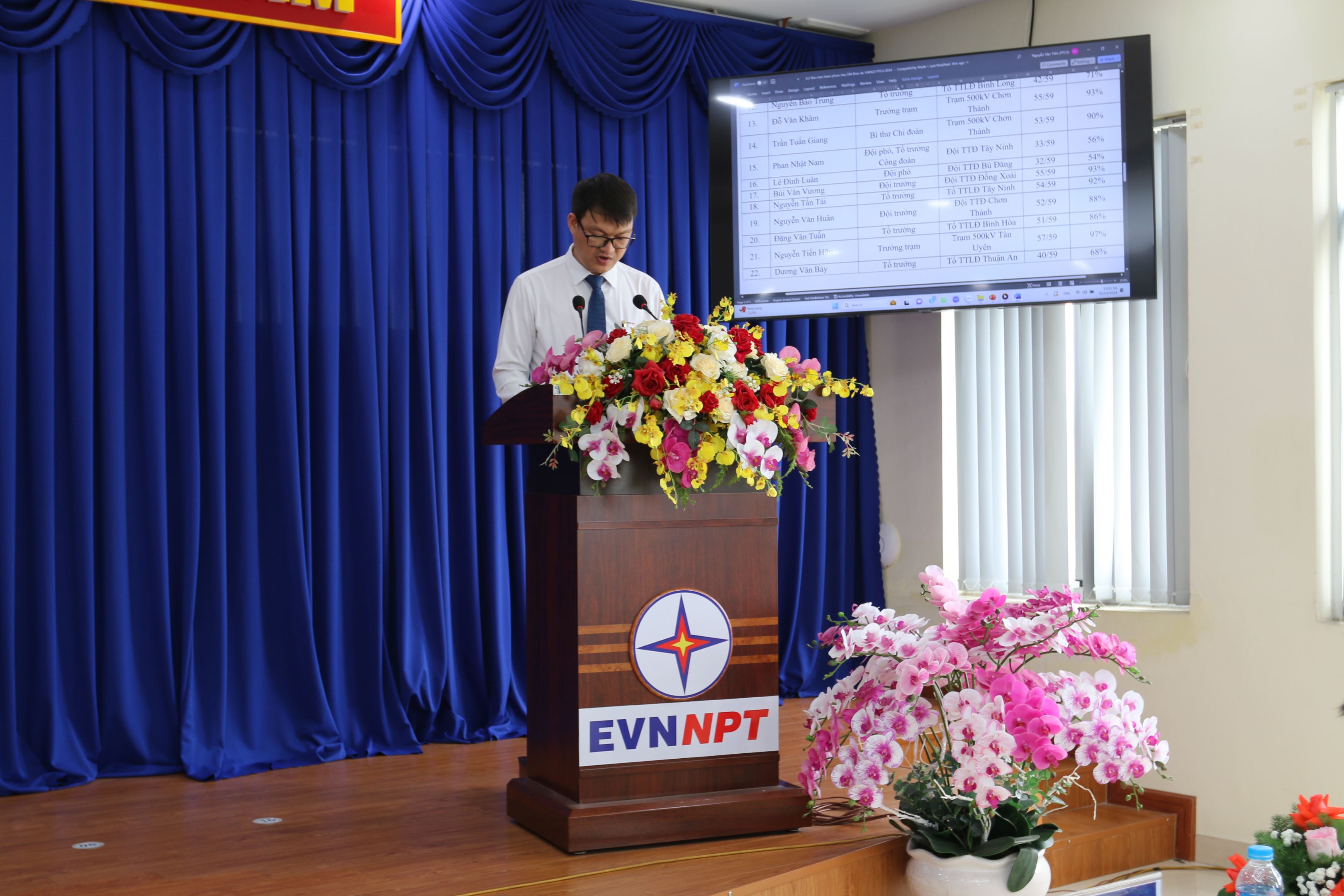 Ông Đào Viết Trường- Phó Chủ tịch Công đoàn Truyền tải điện miền Đông 2 báo cáo tổng kết hoạt động công đoàn năm 2023 và triển khai các công tác nhiệm vụ năm 2024.