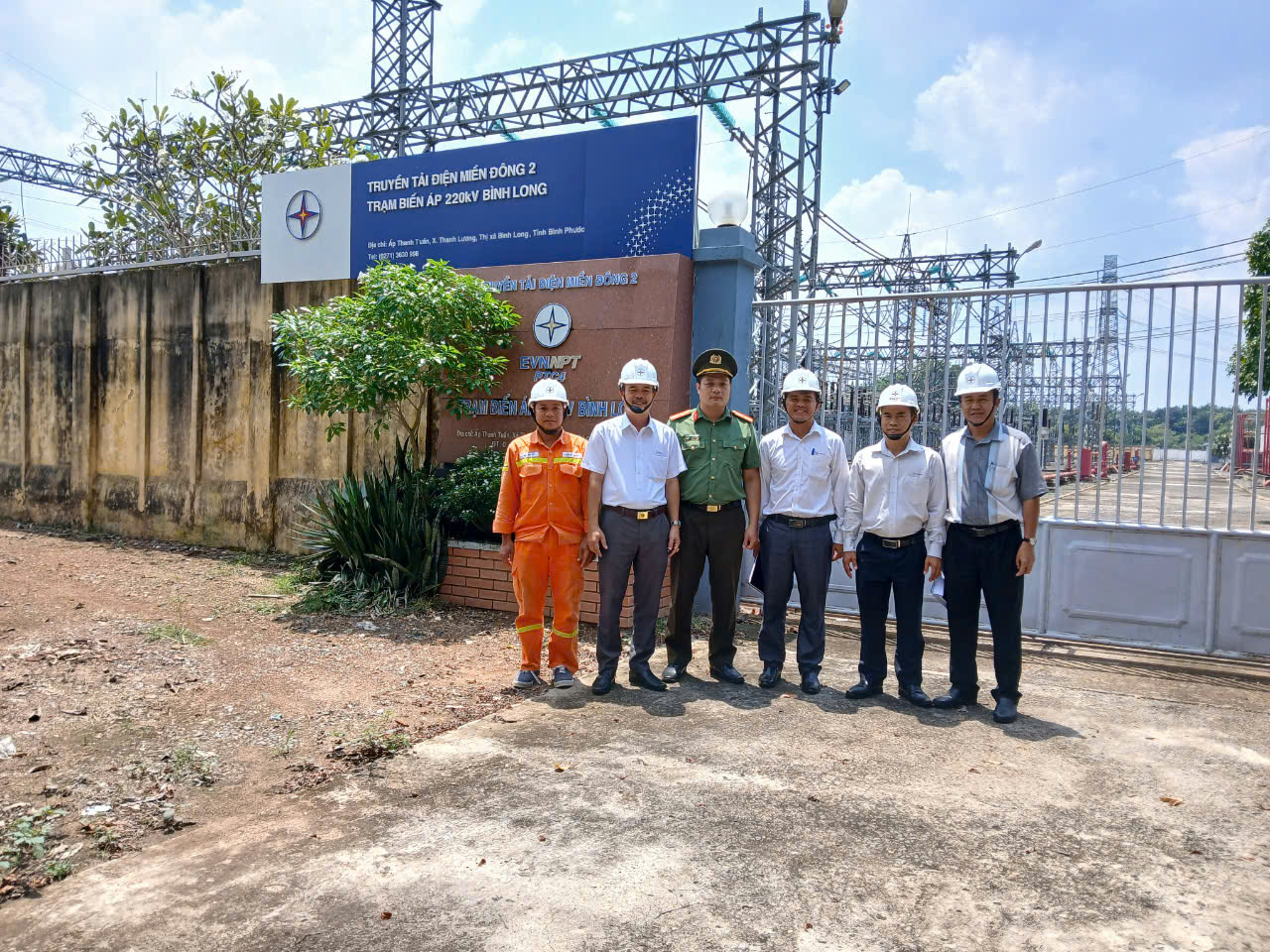 Đoàn đã đến kiểm tra thực địa tại các Trạm biến áp 500kV Chơn Thành và Trạm 220kV Bình Long, theo đó ghi nhận các đơn vị đã thực hiện tốt công tác bảo vệ tài sản, bảo vệ hành lang an toàn lưới điện cao áp của Công ty Truyền tải điện 4 trong các ngày Lễ Quốc khánh 2/9/2024, đảm bảo công tác phòng chống cháy các trạm biến áp. Trạm 500kV Chơn Thành và trạm 220kV Bình Long trực thuộc Truyền tải điện miền Đông 2 có nhiệm vụ đảm bảo cung cấp điện cho tỉnh Bình Phước và kết nối lưới điện cho Bình Dương, Tây Ninh và Tp Hồ Chí Minh. Qua kiểm tra Đoàn đã nắm bắt tình hình an ninh chính trị xã hội trên địa bàn Thị xã Chơn Thành và Thị xã Bình Long. Đoàn kiểm tra cũng kịp thời chấn chỉnh, đôn đốc, nhắc nhở lực lượng bảo vệ hoàn thành tốt nhiệm vụ trong công tác bảo vệ an toàn công trình lưới điện quốc gia góp phần đảm bảo an ninh, an toàn cho hệ thống lưới Truyền tải điện hoạt động ổn định, liên tục nhất là trước, trong và sau dịp Lễ Quốc khánh 2/9/2024. Trạm 500kV Chơn Thành và Bình Long cần tăng cường phổ biến, quán triệt về nội dung trách nhiệm lực lượng tham gia phối hợp bảo vệ trạm, kịp thời cảnh báo đơn vị quản lý vận hành có biện pháp xử lý ngay khi có nguy cơ mất an ninh, bảo vệ tài sản hệ thống truyền tải thuộc phạm vi quản lý của các trạm như: phải lập sơ đồ tuyến đường kiểm tra an ninh trật tự để lực lương bảo vệ tuần tra và bảo đảm an toàn điện; theo dõi và giám sát bảo vệ An Phú tại mục tiêu của trạm khi có thay đổi nhân sự thì Công ty TNHH Dịch vụ bảo vệ An Phú phải có văn bản báo cho Truyền tải điện miền Đông 2 để phối hợp với Phòng PA04 tỉnh Bình Phước để xác minh lý lịch, nhân thân, phục vụ cho công tác bảo vệ các công trình liên quan đến an ninh Quốc gia; tiếp tục thực hiện các chỉ đạo của EVNNPT, PTC4 lần lượt tại Văn bản số 4323/EVNNPT-KTTTPC ngày 02/8/2024, Văn bản số 3146/PTC4-KTTTPC ngày 02/8/2024 về việc tăng cường bảo vệ tài sản, lưới điện truyền tải dịp Lễ kỷ niệm này cánh mạng tháng 8 và Quốc Khánh 02/9/2024 và bao gồm cả kiểm soát việc thực hiện của lực lượng bảo vệ của Công ty TNHH Dịch vụ Bảo vệ An Phú và việc phối hợp với các lực lượng khác của các cơ quan chức năng trên địa bàn; đảm bảo hệ thống phòng cháy chữa cháy, camera, hệ thống chống đột nhập, thông tin liên lạc luôn trong tình trạng sẵn sàng; báo cáo và xử lý ngay khi phát hiện bất thường.