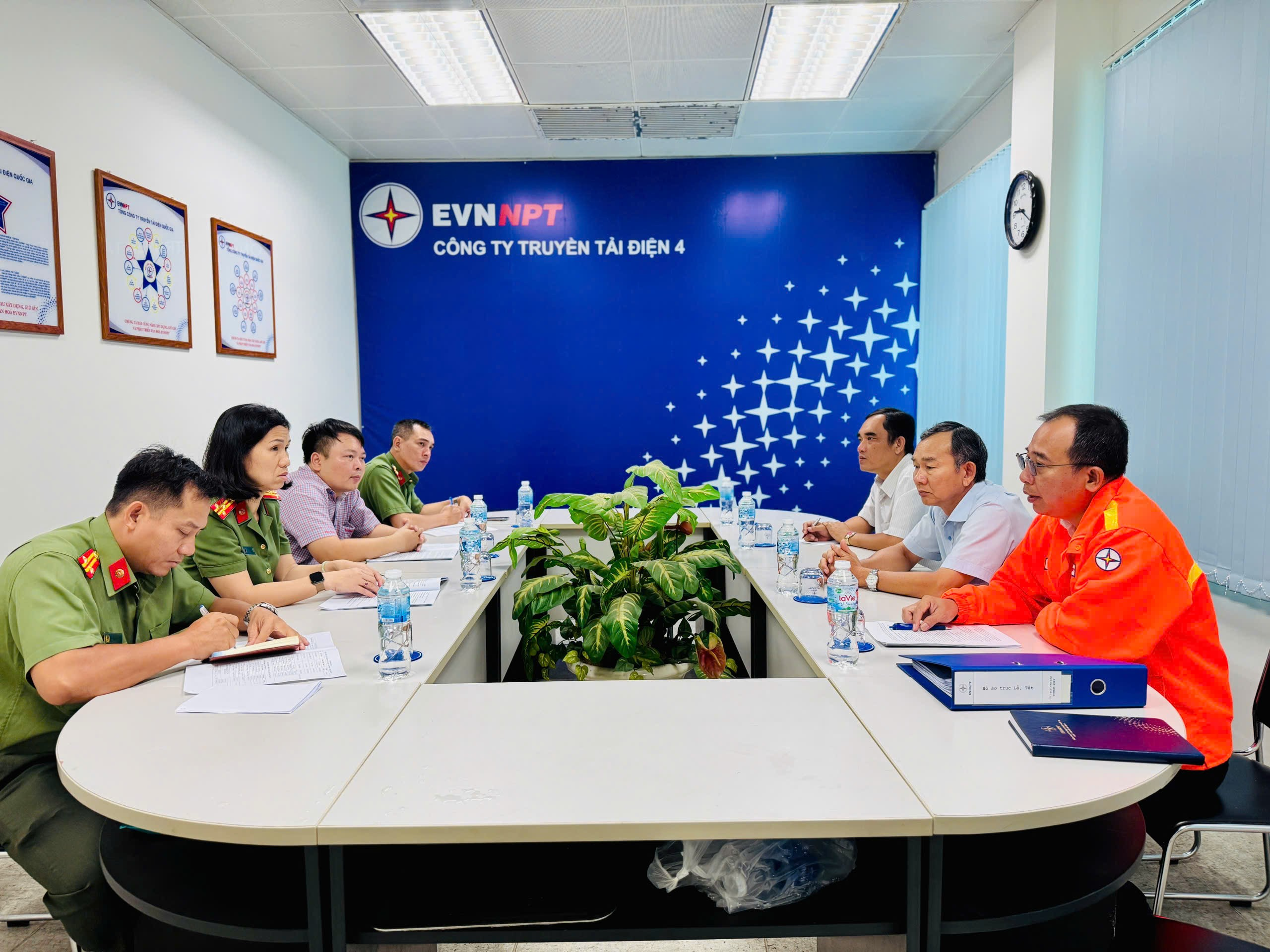 Lãnh đạo Phòng An ninh Kinh tế (PA04) làm việc với với tổ bảo vệ nhằm tăng cường công tác đảm bảo an ninh, an toàn lưới điện