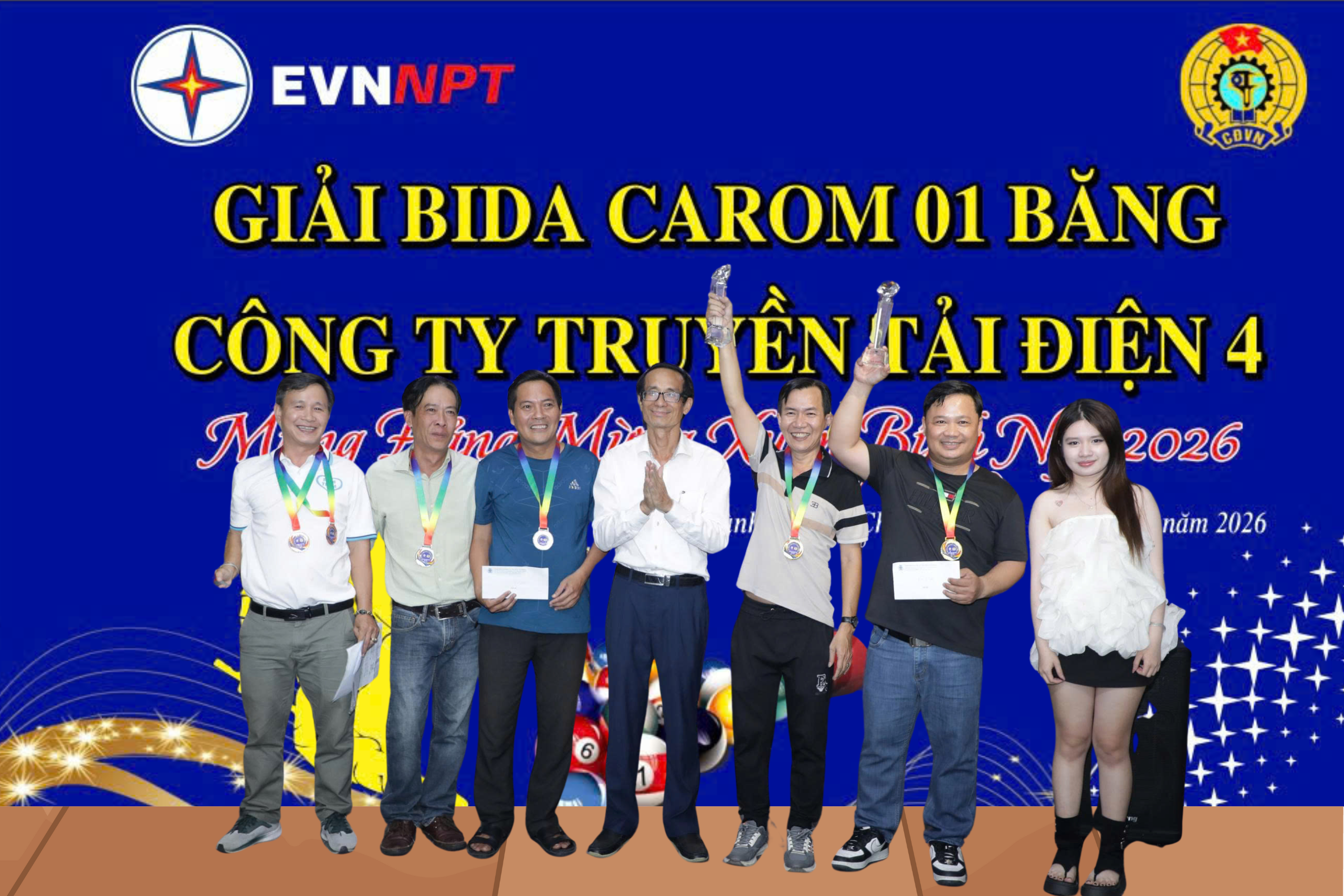 Hưởng ứng không khí thi đua sôi nổi chào mừng kỷ niệm 96 năm Ngày thành lập Đảng Cộng sản Việt Nam và mừng Xuân Bính Ngọ 2026, ngày 04/02/2026, Công đoàn Công ty Truyền tải điện 4 đã tổ chức Giải Bida “Mừng Đảng – Mừng Xuân 2026”.
