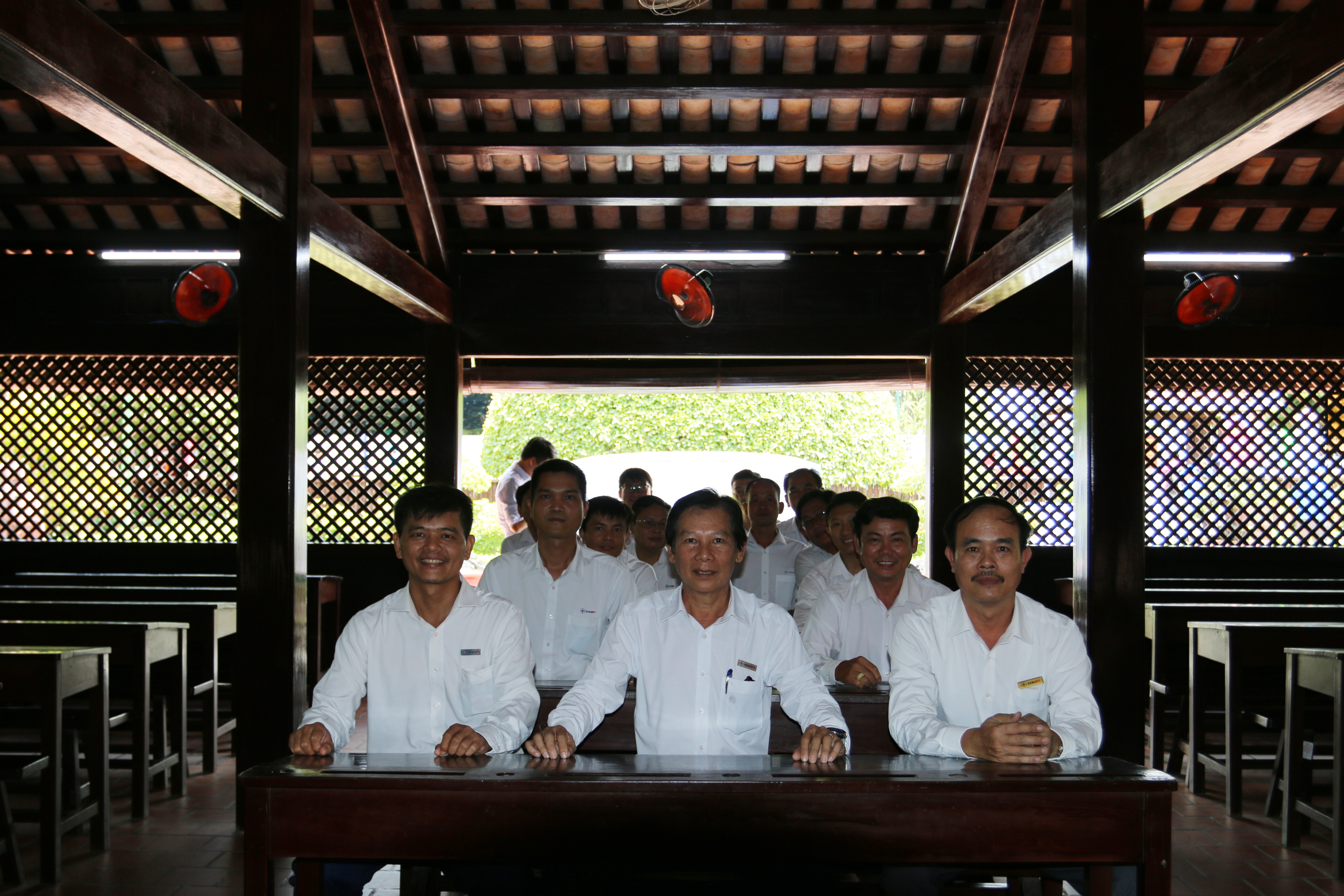 Các đồng chí Đảng viên Chi bộ cơ quan Truyền tải điện - Đảng bộ bộ phận Truyền tải điện miền Đông 2 thăm lớp học nơi Bác đã từng dạy học.