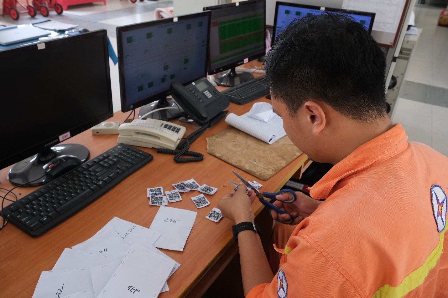 Đoàn viên thanh niên Tổ TTLĐ Châu Đốc cắt và phân loại mã QR code