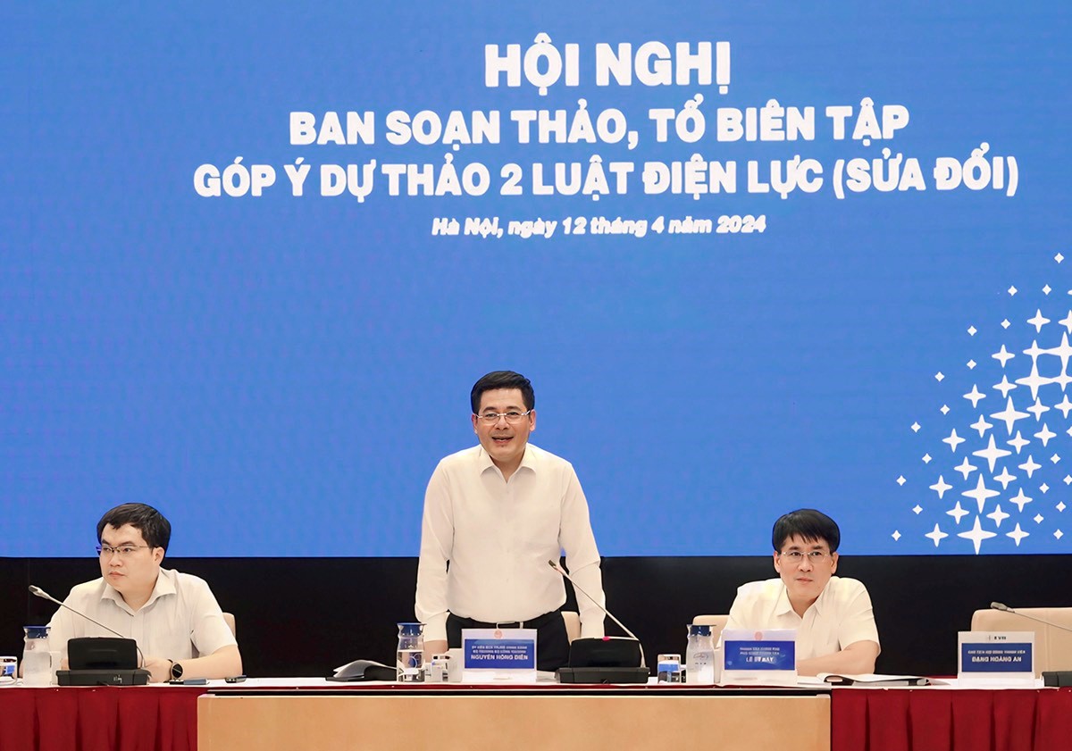 Bộ trưởng Bộ Công Thương Nguyễn Hồng Diên chủ trì Hội nghị lấy ý kiến về nội dung Dự thảo 2 Luật Điện lực (sửa đổi), ngày 12/4/2024