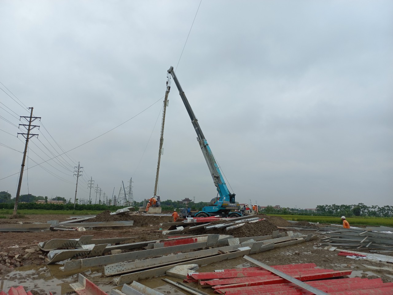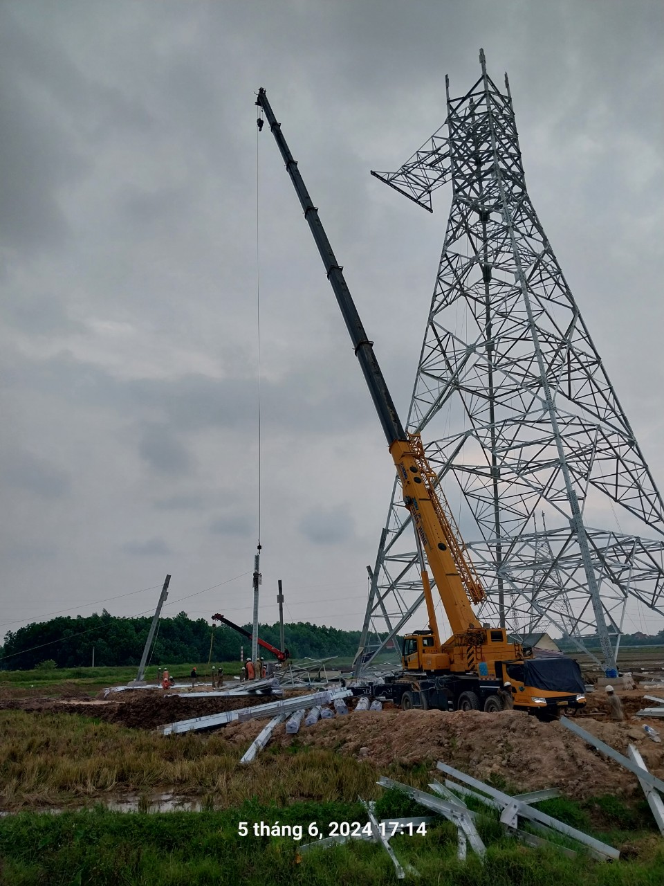 Tính đến ngày 31/5/2024, Công ty Truyền tải điện 4 được Tổng công ty giao đảm nhận thi công dựng cột tại các vị trí néo 2 thân bao gồm đường dây 500kV Nam Định 1 – Phố Nối là cột 190A và 195; đường dây 500kV Quỳnh Lưu – Thanh Hóa là cột 167 và 169, vị trí cột 249 ĐZ 500kV Nam Định – Phố Nối và cột 22 và 55A ĐZ 500kV Quỳnh Lưu – Thanh Hóa thuộc đoạn dự án thành phần. Tất cả các vị trí đều triển khai thi công dựng trụ bằng cẩu. Đoạn dưới 40m sử dụng cẩu 50 tấn và đoạn trên 40m đến 68m, 72m dùng cẩu 100 tấn hoặc 120 tấn.