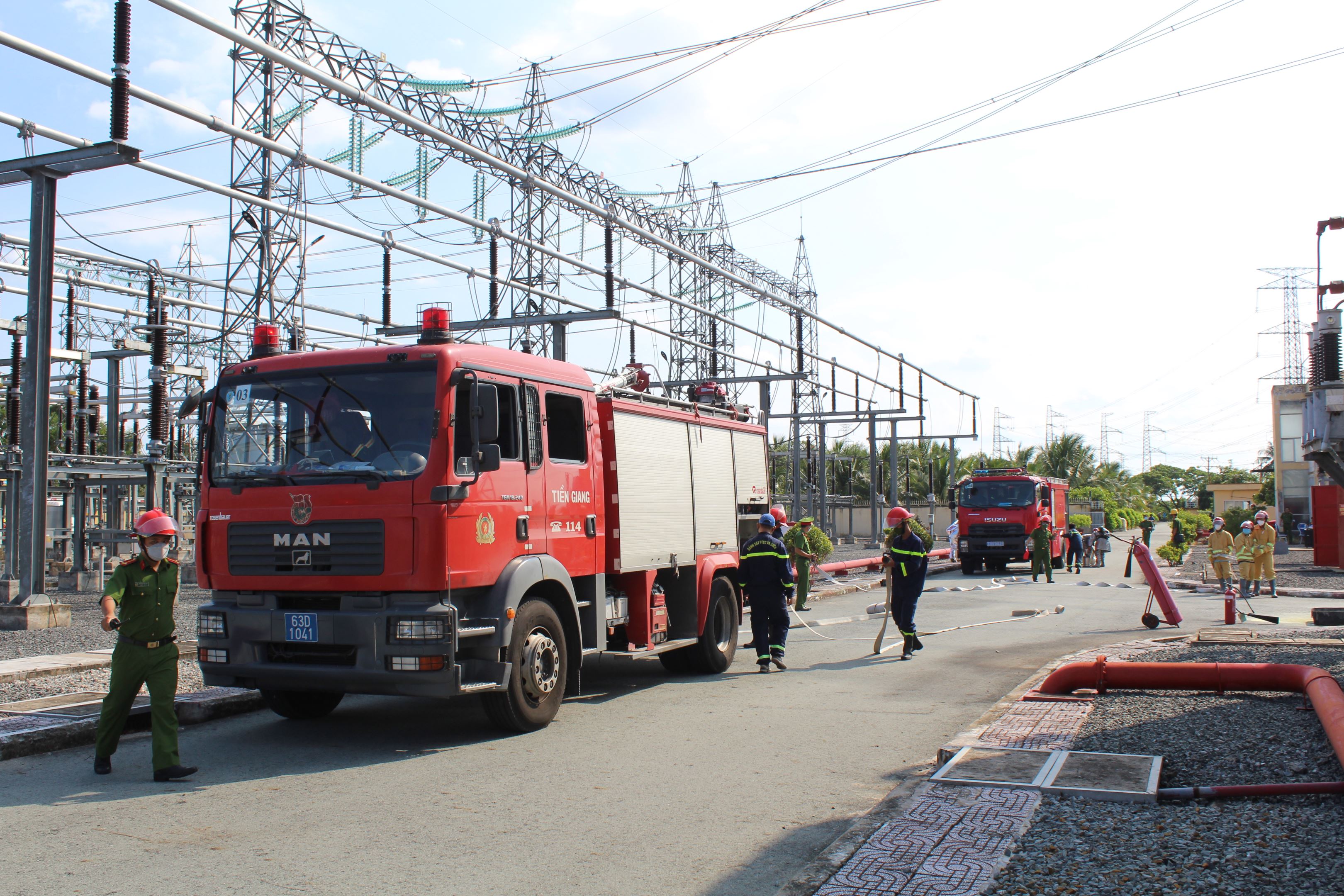 CBCNV Trạm biến áp 500kV Mỹ Tho phối hợp Cảnh sát PCCC và CNCH diễn tập phương án chữa cháy cơ sở;