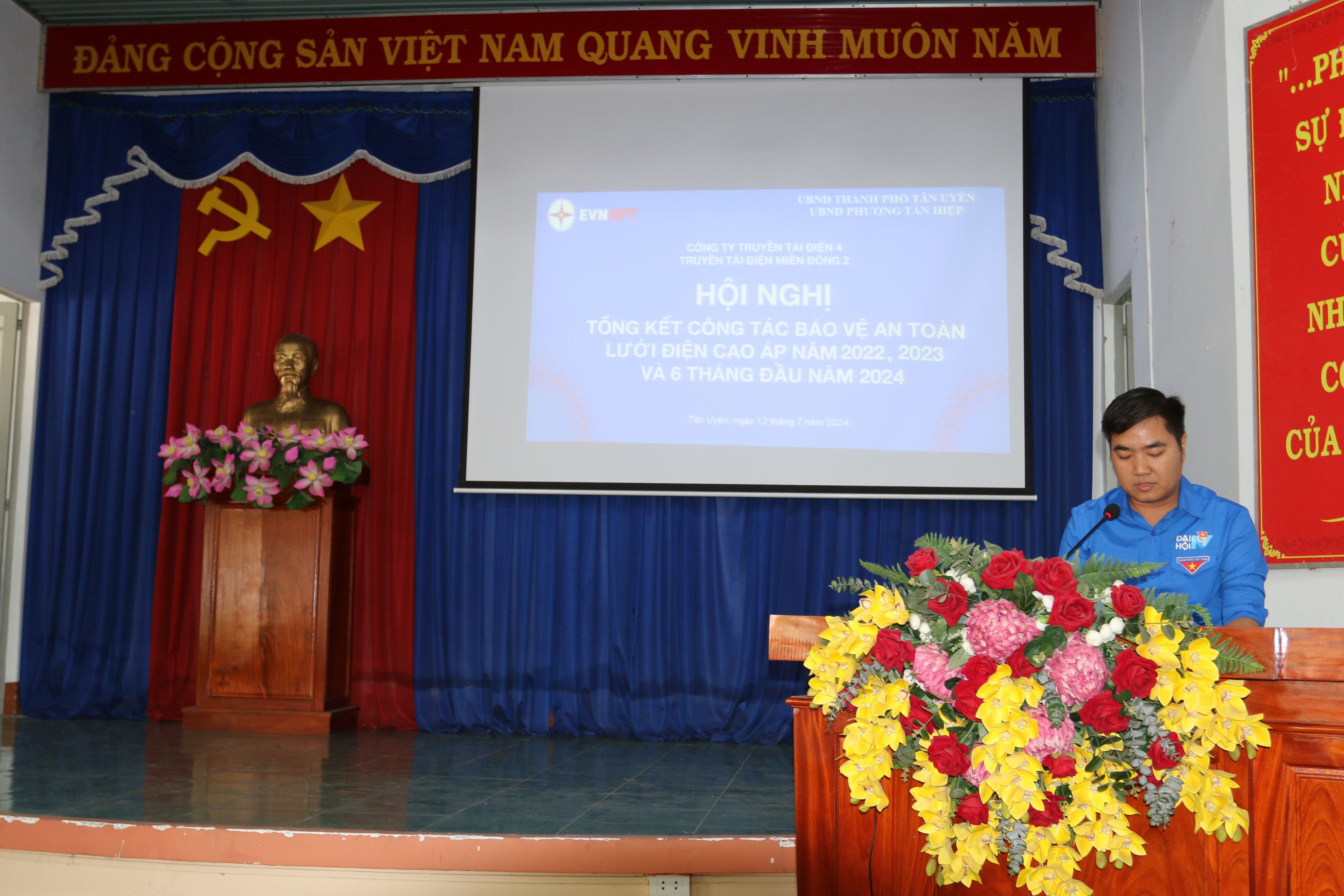 Thay mặt chi đoàn Truyền tải điện miền Đông 2, ông Trần Duy Khánh - UVBCH Chi đoàn phổ biến cho người dân về những mối rủi ro nguy hiểm khi bỏ qua các cảnh báo vi phạm hành lang bảo vệ lưới điện, lưới điện do đội Truyền tải điện Thủ Dầu Một quản lý 02 tuyến đường dây 500kV Di Linh Tân Định, đường dây 500kV Sông Mây - Tân Định và 02 đường dây 220kV Uyên Hưng - Mỹ Phước, đường dây 220kV Uyên Hưng - Củ Chi với 46 vị trí cột và 20,77km đi qua địa bàn phường Tân Hiệp. Các tuyến đường dây này kết nối với trạm 500kV Tân Định cung cấp điện cho tỉnh Bình Dương và các tỉnh lân cận. Công tác đảm bảo lưới điện truyền tải vận hành an toàn liên tục mang ý nghĩa rất lớn trong công tác phát triển kinh tế - xã hội khu vực miền Đông Nam Bộ. trên địa bàn phường Tân Hiệp đa phần là dân nhập cư làm việc tại các Công ty trong các khu công nghiệp. Đối với việc phát triển kinh tế xã hội, an ninh, quốc phòng thì đối với thành phố Tân Uyên là hết sức quan trọng, trong đó góp phần không thể thiếu đó chính là hệ thống lưới truyền tải điện. Do đó việc giúp người dân nắm rõ các quy định của pháp luật về hanh lang an toàn lưới điện cao áp tránh dẫn đến các hành vi vi phạm, ảnh hưởng tới tính mạng và tài sản của người dân cũng như tới công tác quản lý vận hành đường dây cao áp là rất cần thiết nhằm nâng cao nhận thức của người dân những kiến thức pháp luật về an toàn lưới điện cao áp và bảo vệ hành lang an toàn lưới điện cao áp. Đặc biệt là các hộ dân sống gần khu vực có đường dây cao áp 500kV đi qua để bảo đảm lưới điện đươc vận hành an toàn liên tục, cung ứng điện đầy đủ trong dịp Lễ, Tết và các sự kiện chính trị, văn hóa lớn, tránh gây ảnh hưởng đến tính mạng tài sản của nhân dân, tài sản của Nhà nước phục vụ đời sống an ninh, Quốc phòng, ổn định thị trường điện và đảm bảo an ninh năng lượng quốc gia.