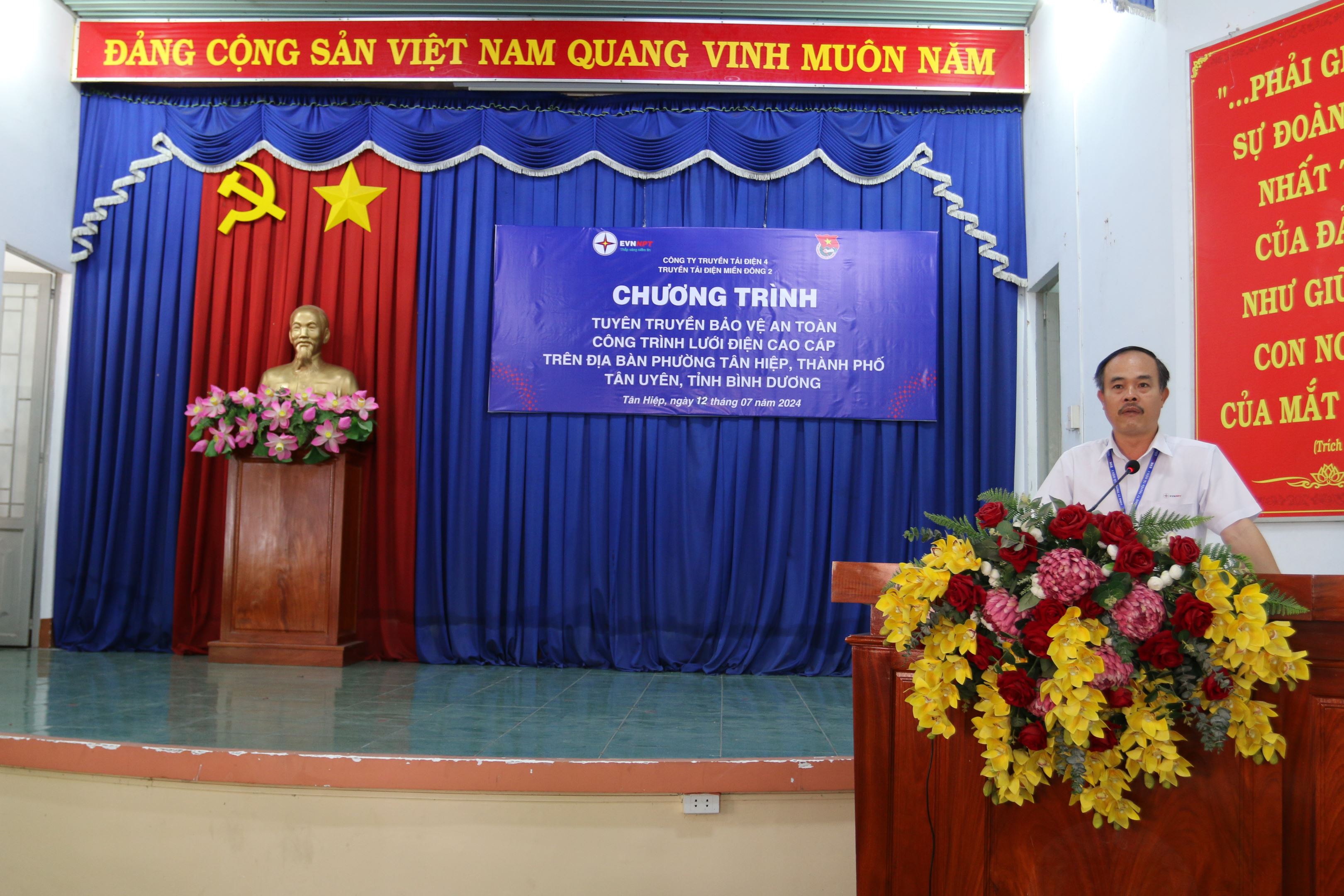 Phát biểu tại Chương trình, ông Lê Văn Nhi Đồng - Chủ tịch UBND phường Tân Hiệp đã nhấn mạnh: "Việc phối hợp tổ chức chương trình này không những tuyên truyền, phổ biến kiến thức pháp luật về an toàn lưới điện cao áp, về bảo vệ hành lang lưới điện; tuyên truyền để người dân sinh sống dọc tuyến hành lang chung tay góp sức với ngành điện và ngành truyền tải cùng nhau bảo vệ an ninh năng lượng Quốc gia mà còn góp phần tạo thêm sự gắn kết giữa địa phương với Đơn vị Truyền tải điện. Chương trình tuyên truyền thực sự rất ý nghĩa, thiết thực và thể hiện được tinh thần vì cộng đồng của Đoàn Thanh niên Công ty Truyền tải điện 4. Chính quyền địa phương xin được gửi lời cảm ơn chân thành nhất đến Tổng Công ty Truyền tải điện Quốc gia, Công ty Truyền tải điện 4, Truyền tải điện miền Đông 2. Địa phương sẽ tiếp tục tạo mọi điều kiện cũng như phối hợp với Ngành Điện trong công tác bảo vệ hành lang an toàn lưới điện truyền tải, rất mong rằng những thông tin bổ ích trong chương trình sẽ phần nào giúp người dân địa phương có thêm kiến thức, hiểu biết về các quy định của pháp luật, từ đó chung tay góp sức cùng Ngành Điện để bảo vệ hành lang an toàn lưới điện cao áp”.