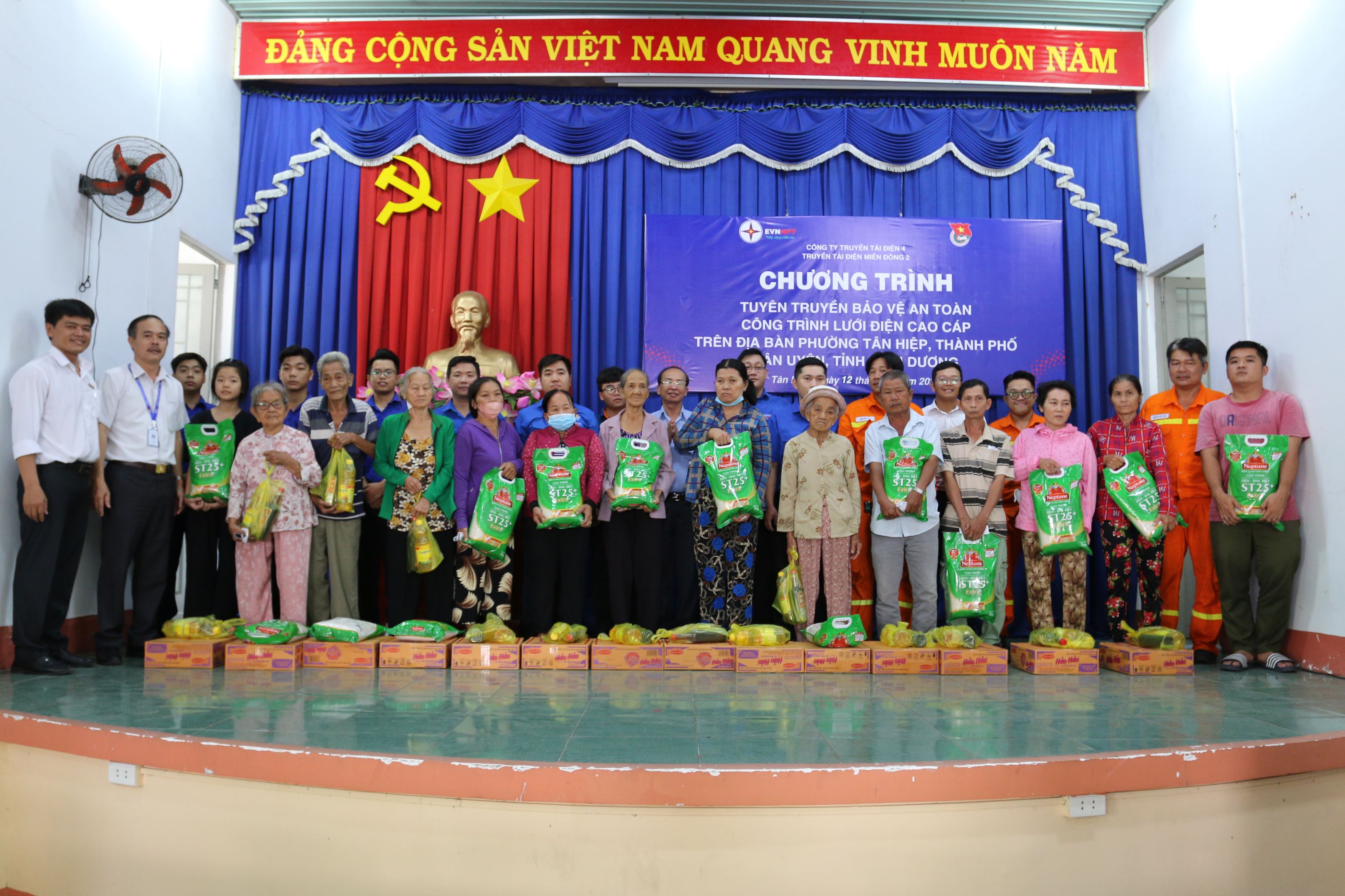 Trong các hoạt động tại chương trình, Đoàn Thanh niên Công ty Truyền tải điện 4, Chi đoàn Truyền tải điện miền Đông 2 đã trao 30 phần quà cho 30 hộ dân sinh sống gần hành lang bảo vệ lưới điện và có hoàn cảnh khó khăn nhằm đóng góp thêm cho hoạt động an sinh xã hội tại địa phương. Đội Truyền tải điện Thủ Dầu Một phổ biến hơn 150 tờ rơi tuyên truyền bảo vệ hành lang lưới điện, vận động hơn 50 hộ dân lập cam kết bảo vệ hành lang an toàn lưới điện, trao tặng 1.000 cuốn tập cho trường Tiểu học Tân Hiệp thuộc địa bàn phường. Đối với nội dung tuyên truyền, Đội đã phổ biến về Quyết định số 1944/QĐ-TTg ngày 04 tháng 12 năm 2017 của Thủ tướng Chính phủ về việc đưa Hệ thống Truyền tải điện 500kV vào danh mục công trình quan trọng liên quan đến ANQG, Luật điện lực số 28/2004/QH11 ngày 03/12/2004 và Luật sửa đổi, bổ sung một số điều của Luật điện lực số 24/2012/QH13 ngày 20/11/2012.Nghị định 126/2008/NĐ-CP ngày 11/12/2008 của Chính phủ quy định chi tiết và hướng dẫn thi hành một số điều của Pháp lệnh Bảo vệ công trình quan trọng liên quan đến an ninh quốc gia. Nghị định 14/2014/NĐ-CP ngày 26/02/2014 của Chính phủ quy định chi tiết thi hành một số điều của Luật điện lực về an toàn điện; Nghị định 51/2020/NĐ-CP ngày 21/4/2020 của Chính phủ sửa đổi, bổ sung một số điều của Nghị định số 14/2014/NĐ-CP ngày 26/02/2014. Nghị định 17/2022/NĐ-CP ngày 31/01/2022 của Chính phủ sửa đổi, bổ sung một số điều của các nghị định quy định về xử phạt vi phạm hành chính trong lĩnh vực hóa chất và vật liệu nổ công nghiệp; điện lực, an toàn đập thủy điện, sử dụng năng lượng tiết kiệm và hiệu quả; hoạt động thương mại, sản xuất, buôn bán hàng giả, hàng cấm và bảo vệ quyền lợi người tiêu dùng; hoạt động dầu khí, kinh doanh xăng dầu và khí. Thông tư 05/2021/TT-BCT ngày 02/8/2021 của Bộ Công Thương quy định chi tiết một số nội dung về an toàn điện. Phối hợp với các cơ quan thông tin đại chúng và các địa phương tích cực tổ chức tuyên truyền về an toàn điện trong nhân dân, bảo vệ HLAT LĐCA theo Nghị định 14/2014/NĐ-CP.
