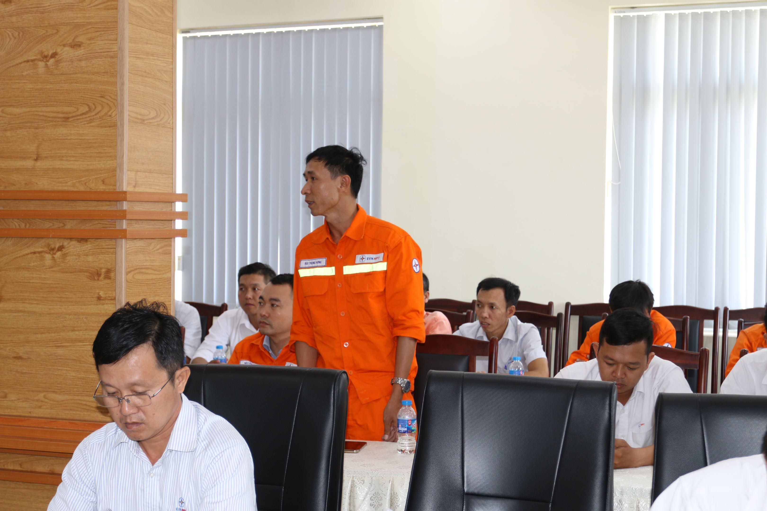Anh Bùi Trung Hưng - An toàn vệ sinh viên Đội Truyền tải điện Thủ Dầu Một nêu một số giải pháp cải thiện điền kiện làm việc.