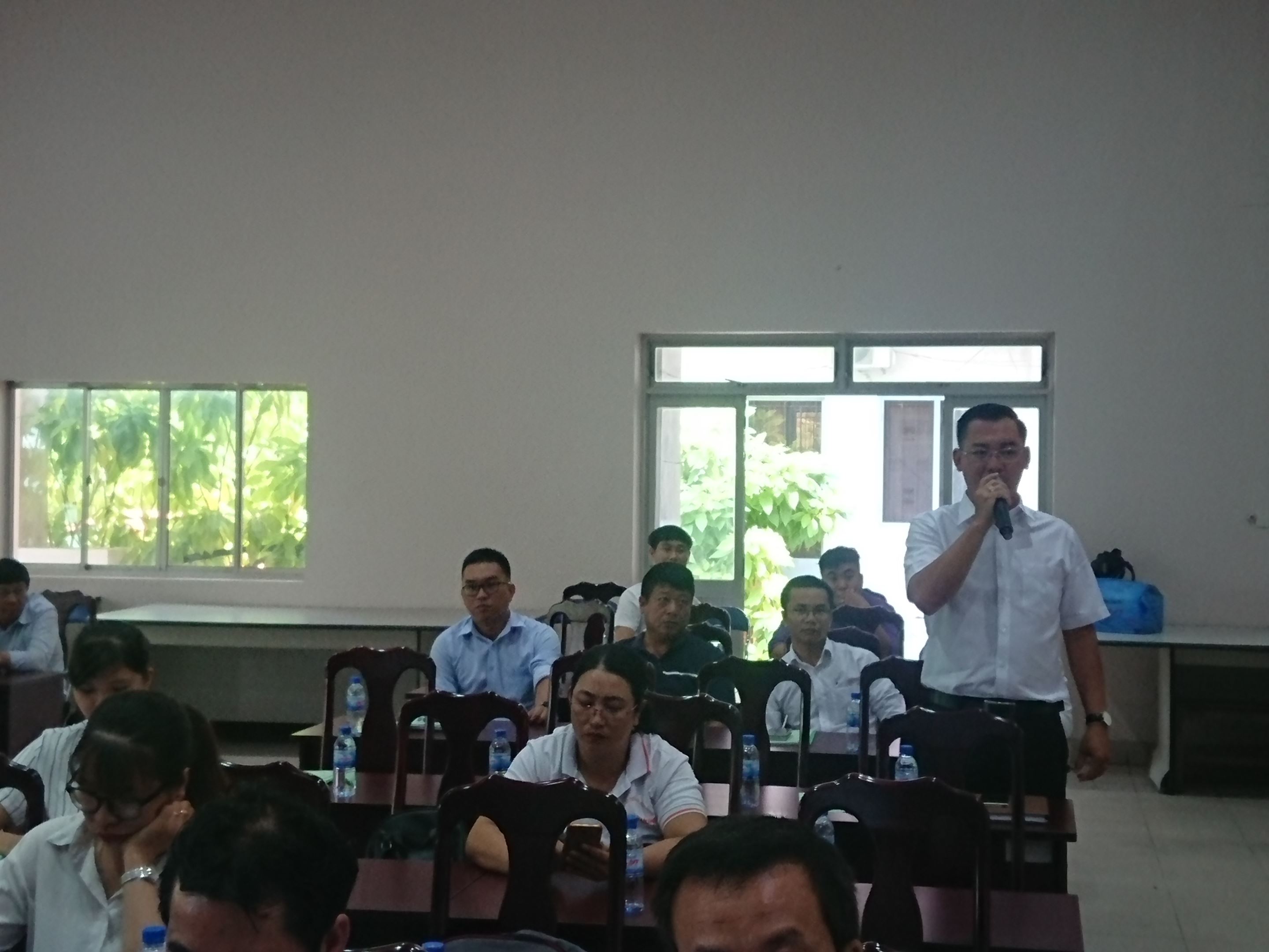 Đại diện cán bộ xã, phường, phát biều tại buổi tập huấn.