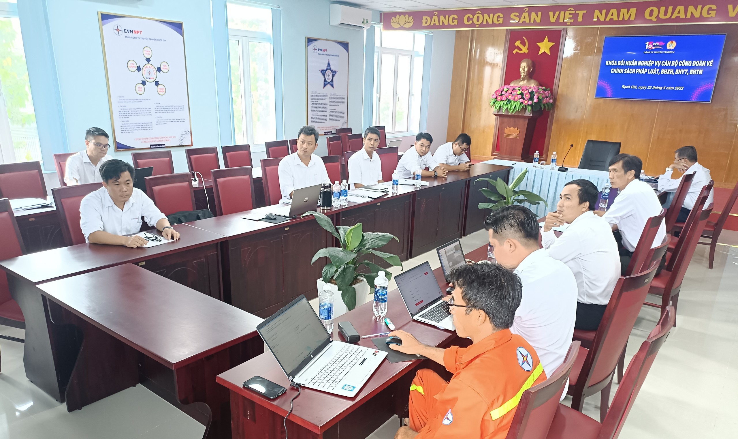 Thực hiện Chương trình công tác năm 2023, Công đoàn Công ty Truyền tải điện 4 đã phối hợp Chuyên môn tổ chức tập huấn nâng cao năng lực hoạt động cán bộ công đoàn, toàn bộ nội dung chương trình tập huấn do giảng viên của Bảo hiểm xã hội Thành phố Hồ Chí Minh truyền đạt. Lớp tập huấn diễn ra theo hình thức trực tuyến, với 7 điểm cầu truyền hình. Đại diện Công đoàn Công ty Ông Nguyễn Phương Nam, Chủ tịch Công đoàn khai mạc lớp học.