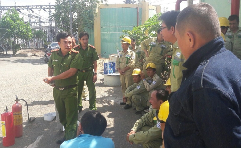 Tham dự tập huấn có 40 đội viên thuộc 03 đội PCCC cơ sở trạm 500kV Nhà Bè, trạm 220kV Nhà Bè và đội Truyền tải điện Nhà Bè.