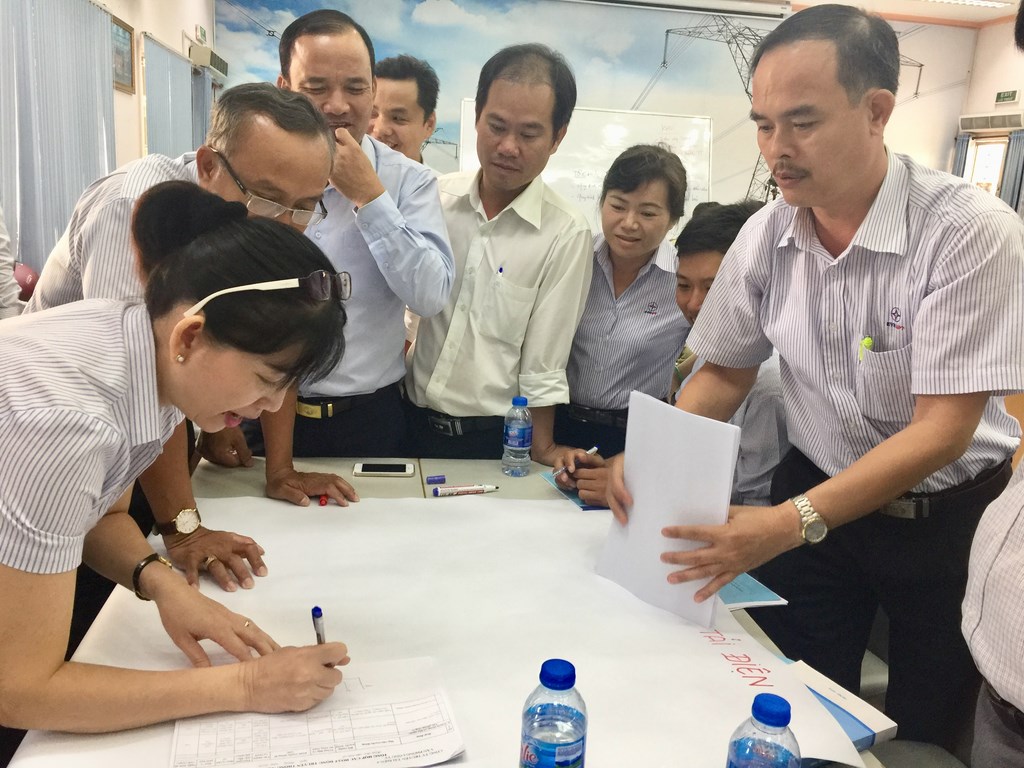 Các học viên đang thực hành bài tập – Lập kế hoạch triển khai một hoạt động truyền thông quan trọng nhất.