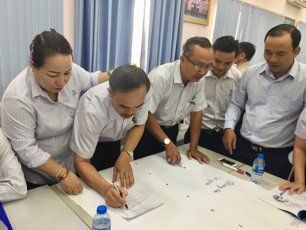 Các học viên đang thực hành bài tập – Lập kế hoạch truyền thông năm 2019.
