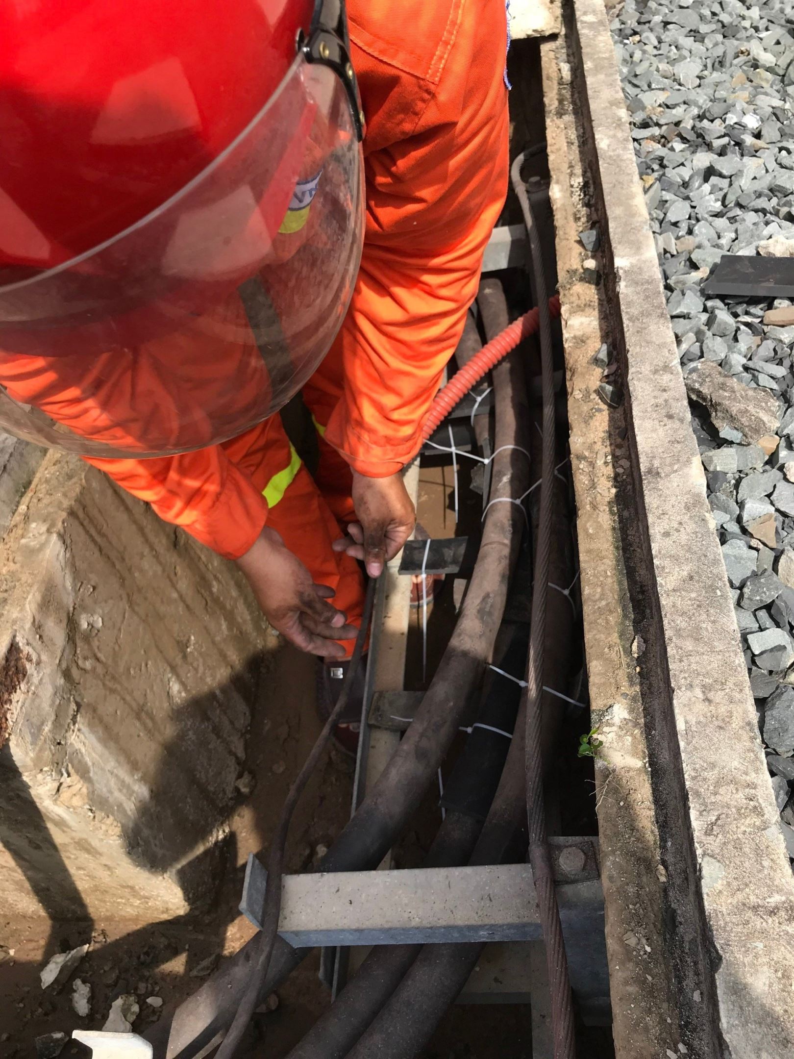 Trạm 500kV Mỹ Tho phối hợp với Tổ xử lý sự cố thực hiện kê lót cáp ngầm phía 35kV MBA AT1