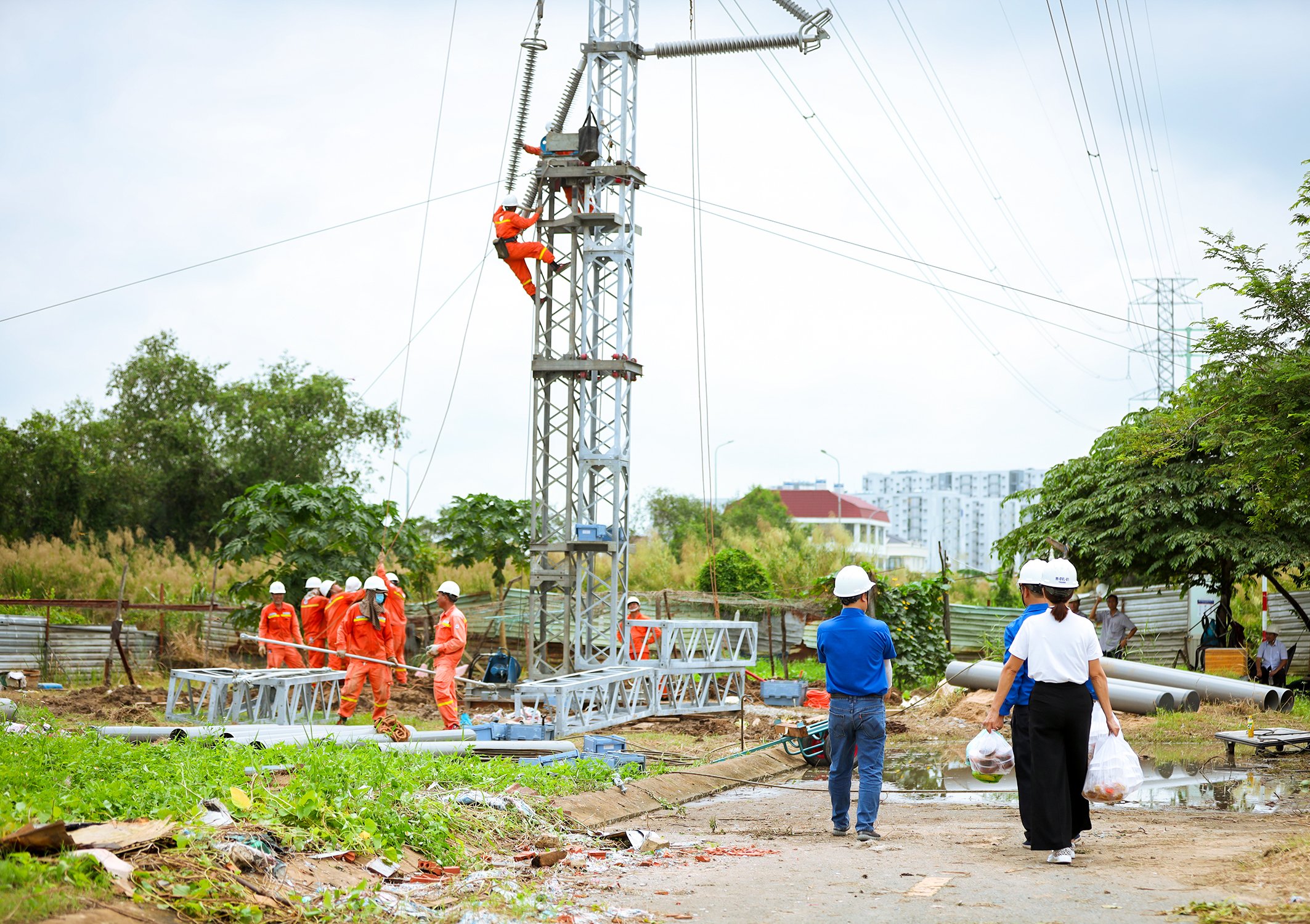 Trên công trường, gặp gỡ các CBCNV đang thi công, Bí thư Đoàn thanh niên Truyền tải điện Thành phố Hồ Chí Minh chia sẽ những vất vả, khó khăn, đồng thời vận động CBCNV tích cực công tác để đưa tuyến đường dây mạch kép 220kV Cát Lái – Thủ Đức hoàn thành trả điện theo kế hoạch. Đặc biệt, cũng lưu ý đến công tác đảm bảo an toàn vệ sinh lao động tại công trường.