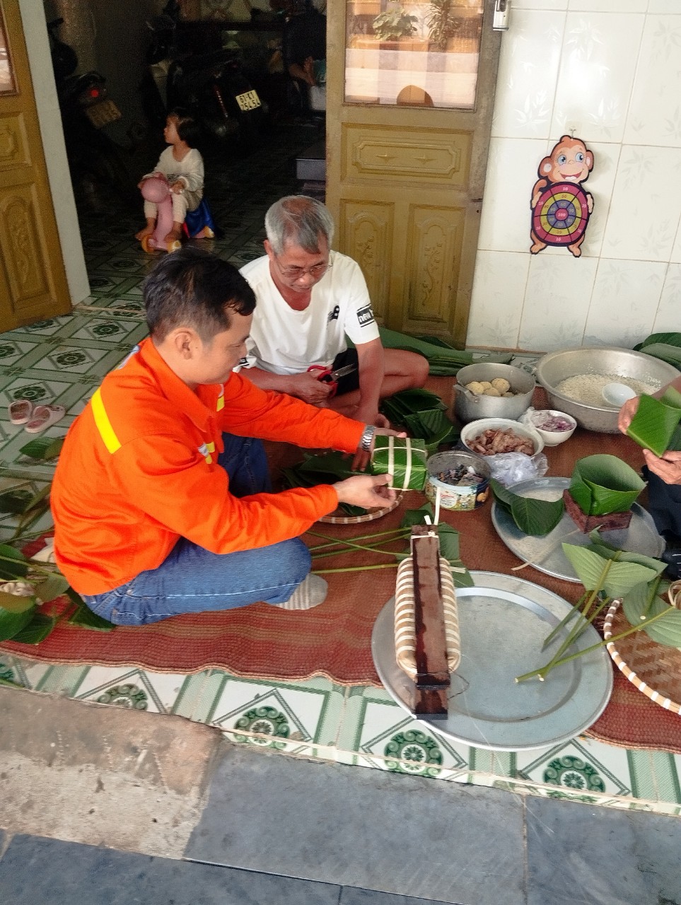 CBCNV Đội Truyền tải điện Chơn Thành thăm và cùng gói bánh chưng với người dân