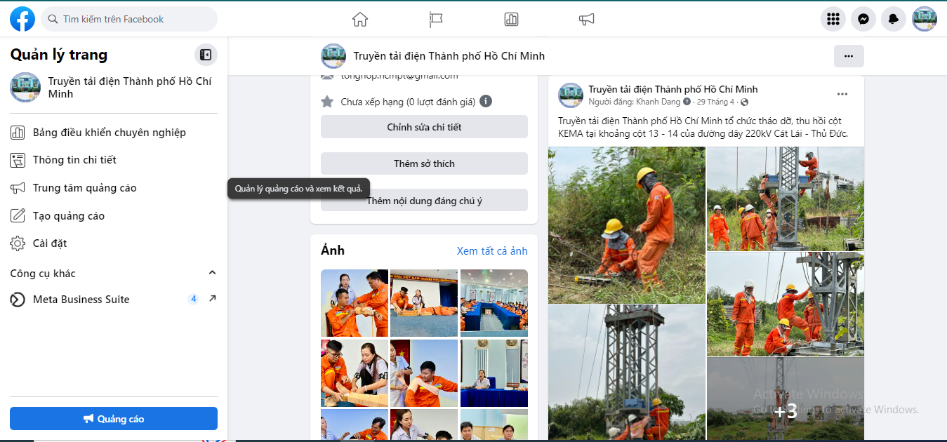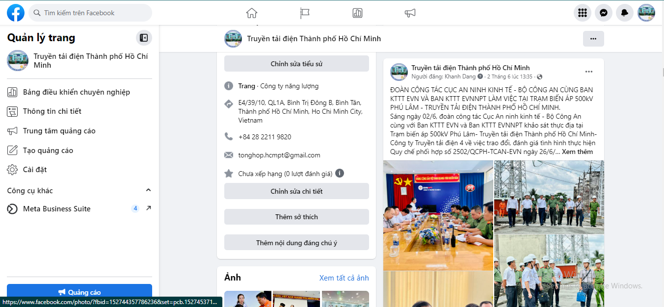 Fanpage Truyền tải điện Thành phố Hồ Chí Minh thường xuyên đăng tải thông tin về hoạt động của đơn vị