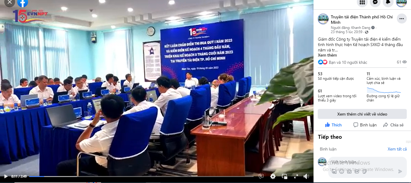 Từ đầu năm đến nay, trang fanpage của Truyền tải điện Thành phố Hồ Chí Minh (TTĐHCM) có khoảng 50 lượt tin bài đăng trên kênh truyền thông của đơn vị. Kết quả đó phần nào phản ánh chủ trương chuyển đổi số của TTĐHCM trong công tác truyền thông. Trước tiên là đưa hình ảnh của đơn vị gần hơn với người dân, sau đó khẳng định mỗi cán bộ công nhân viên TTĐHCM là một tuyên truyền viên, góp phần tạo dựng hình ảnh, thương hiệu của người lính Truyền tải điện.